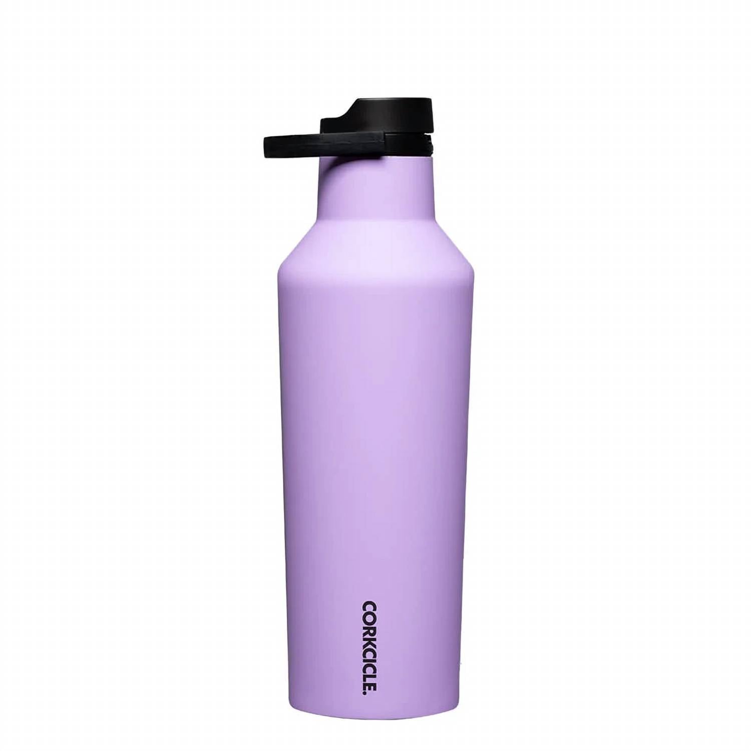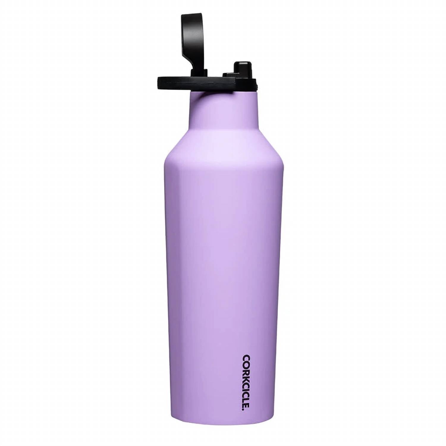 The CORKCICLE Series A Sport Canteen Insulated Water Bottle, in a stunning Sun-Soaked Lilac, is crafted from durable stainless steel with triple insulation for up to 25 hours of cold retention. It features a wide mouth to easily accommodate ice cubes, a convenient folding handle, and a quick sip cap for easy hydration. With a strong DURAPRENE™ finish, this 20 oz. bottle is both stylish and functional, measuring 10.59 inches in height, 3.07 inches in width, and 2.68 inches in length, while weighing 1.03 lbs. Care is a breeze, as it is dishwasher safe.