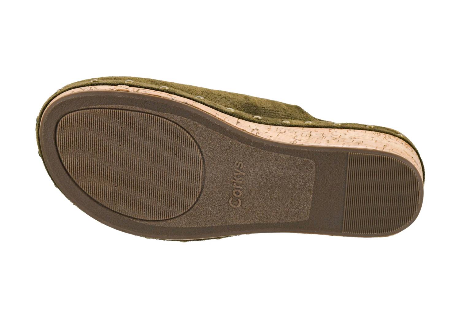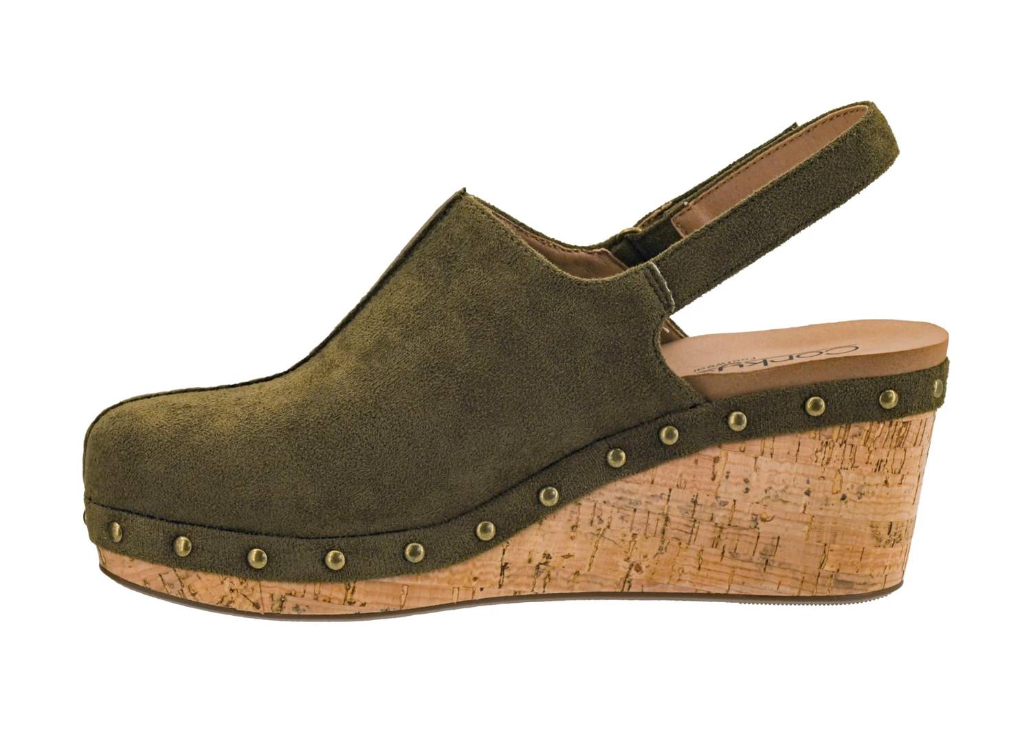 Dresses, denim, shorts... these wedges go with just about anything. Step into vintage elegance with the Make Em Blush Wedge by Corkys Footwear in a chic khaki faux suede finish. Featuring a mid-height 2.5-inch wedge heel, these wedges offer a comfortable and roomy round toe design perfect for all-day wear. Each step is cushioned by a soft EVA insole, combined with a lightweight construction and a practical hook and loop closure for easy, secure wear. Ideal for spring and evening events, these wedges pair effortlessly with jeans, dresses, and skirts to add a versatile touch to your wardrobe.