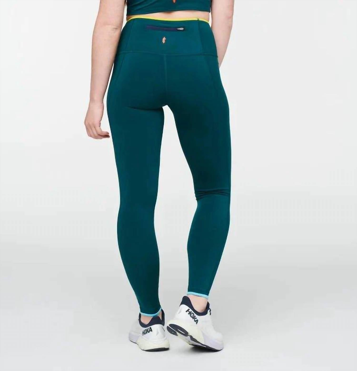 Leggings you can dress up or down for any occasion. Elevate your activewear collection with the Women’s Mari Leggings by Cotopaxi, crafted in a stunning Deep Ocean shade. Designed with a high-rise, slim fit, and a 27.5-inch inseam, these leggings are made from 73% recycled polyester and 27% spandex (250gsm) for a comfortable and supportive feel. Featuring quick-dry and anti-odor technology, as well as flatlock seams to prevent chafing, they're perfect for yoga, running, or lounging. Additional details include a back zippered stash pocket, a wide waistband, and a subtle pop of color at the ankle.