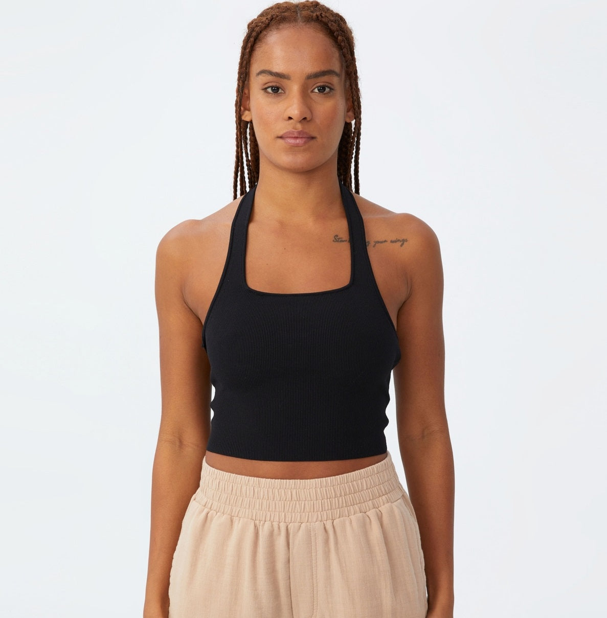 COTTON ON Women's Summer Knit Twist Back Vestlette Top Black Size Large