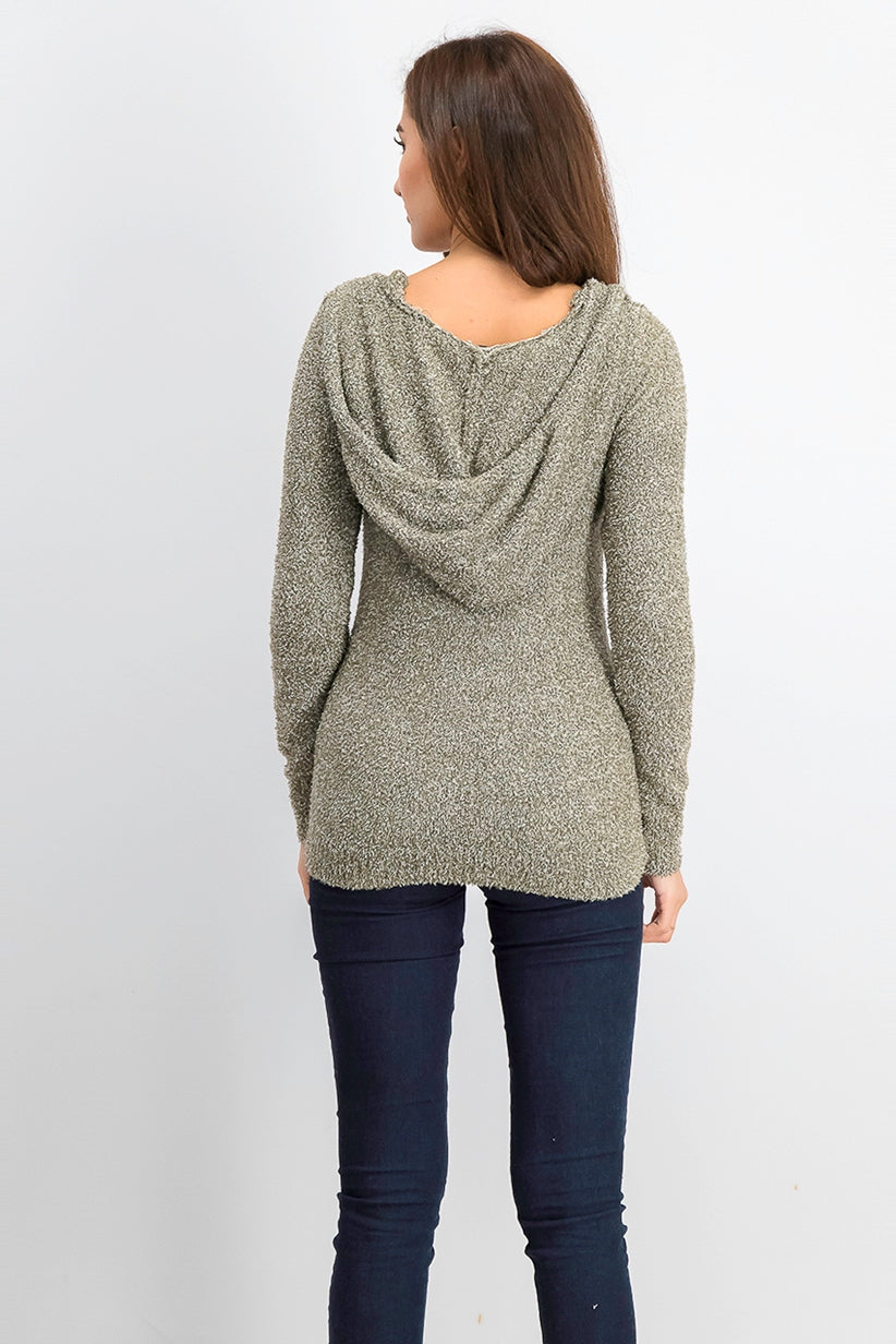 Crave Fame Juniors' Marled Fuzzy Pullover Hoodie Green Size Large