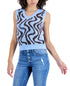 Crave Fame Junior's Retro Printed V Neck Sweater Vest Blue Size Medium