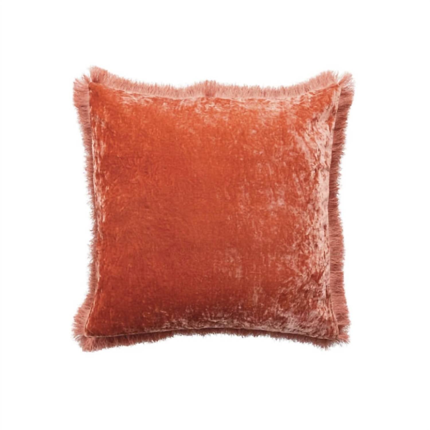 Introducing the Square Fabric Blend Pillow With Eyelash Fringe by Creative Co-Op, a luxurious touch to any decor in a rich clay hue. Crafted from a blend of viscose and silk, this pillow features a unique eyelash fringe that adds a playful elegance to its classic 20-inch square shape. Designed for both comfort and style, its soft polyester filling offers excellent support, making it ideal for lounging. Enhance your living space with this sophisticated accent piece that complements Art Deco and vintage aesthetics effortlessly.