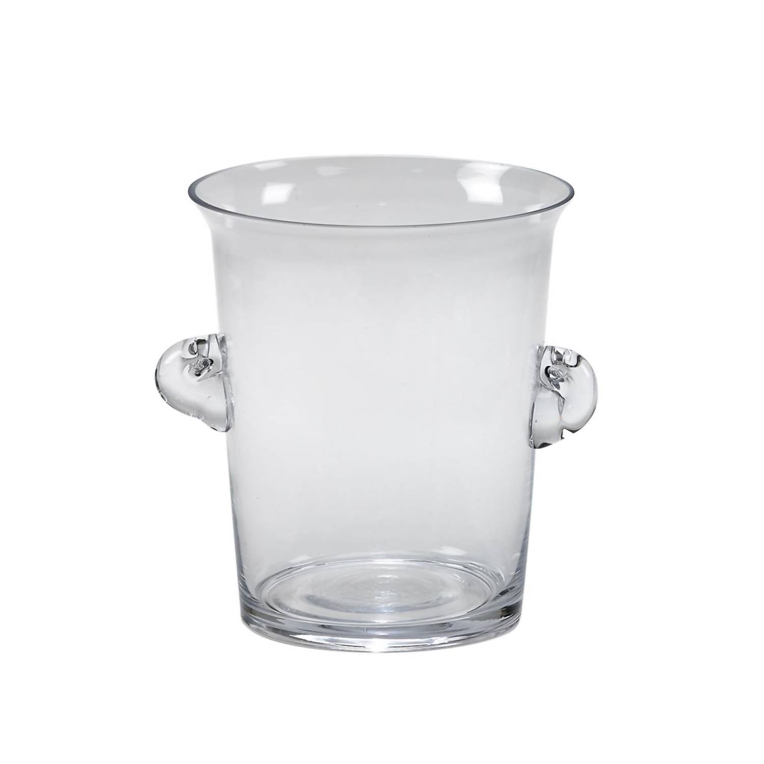 Introducing the Glass Ice Bucket & Wine/Champagne Chiller by Creative Gifts International—a perfect blend of elegance and utility for any host. Designed for versatility, use it to chill beverages or as a decorative focal point, featuring a durable clear glass composition and two elegant glass handles for easy transport. Sized at 8.5" tall and 7.25" in diameter. Gift-ready, it arrives in a stylish box, making it an exquisite present for any celebration.