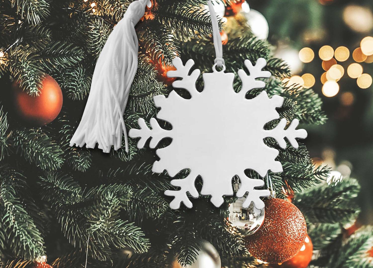 The snowflake ornament is manufactured in a bright, nickel plated non-tarnish finish and includes a white tassel. The snowflake ornament measures 2.875" x 2.875". White Gift Box.