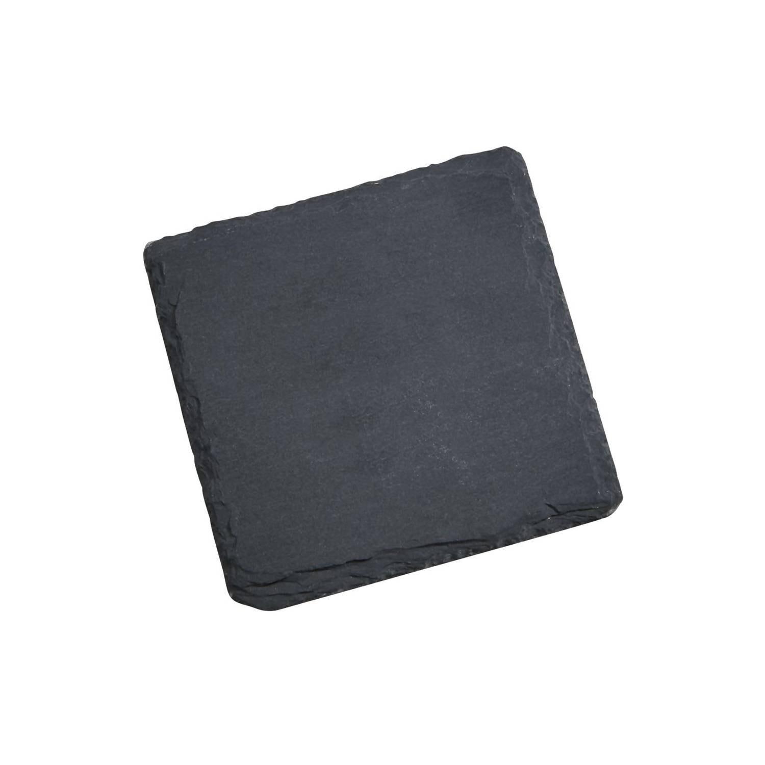 These 4" square genuine natural slate coasters feature textured edges and 4 padded feet on each coaster. Intended as coasters, we've heard of uses as mini-cheese or snack servers, and even buffet signs too. Write on them with chalk - it wipes clean with a damp cloth. You can add a laser etched monogram, too (engraving available - check for additional cost if applicable). The set of four makes a great housewarming or wedding gift. Gift boxed.