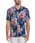 Cubavera Men's Floral Print Textured Short Sleeve Shirt Blue Size Medium