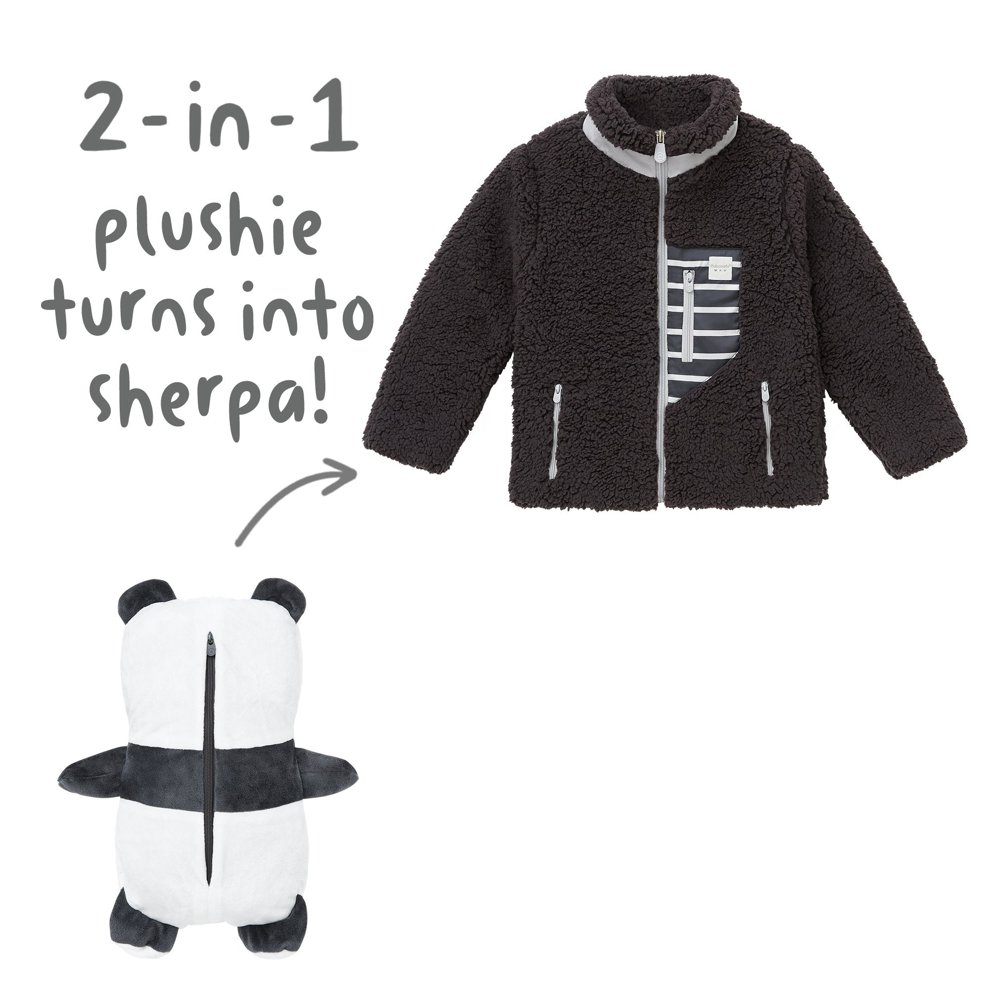 A plush stuffed panda transforms into a comfy high pile-fleece jacket with all the same hugability and double the whimsical fun| Front zip closure Chest vertical-zip pocket; front vertical-zip pockets 100% polyester with 100% polyester fleece contrast Machine wash| dry flat Imported Kids' Wear
