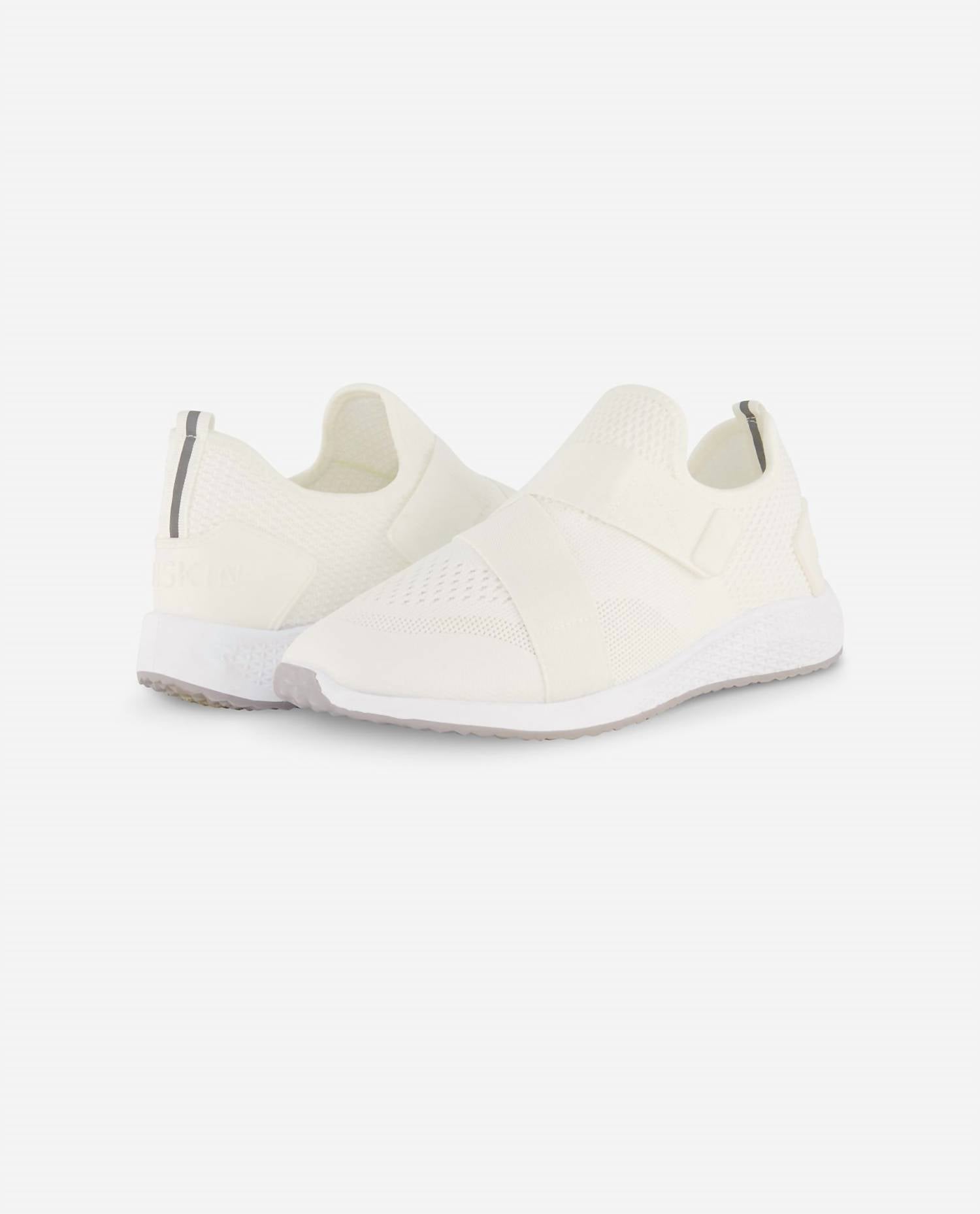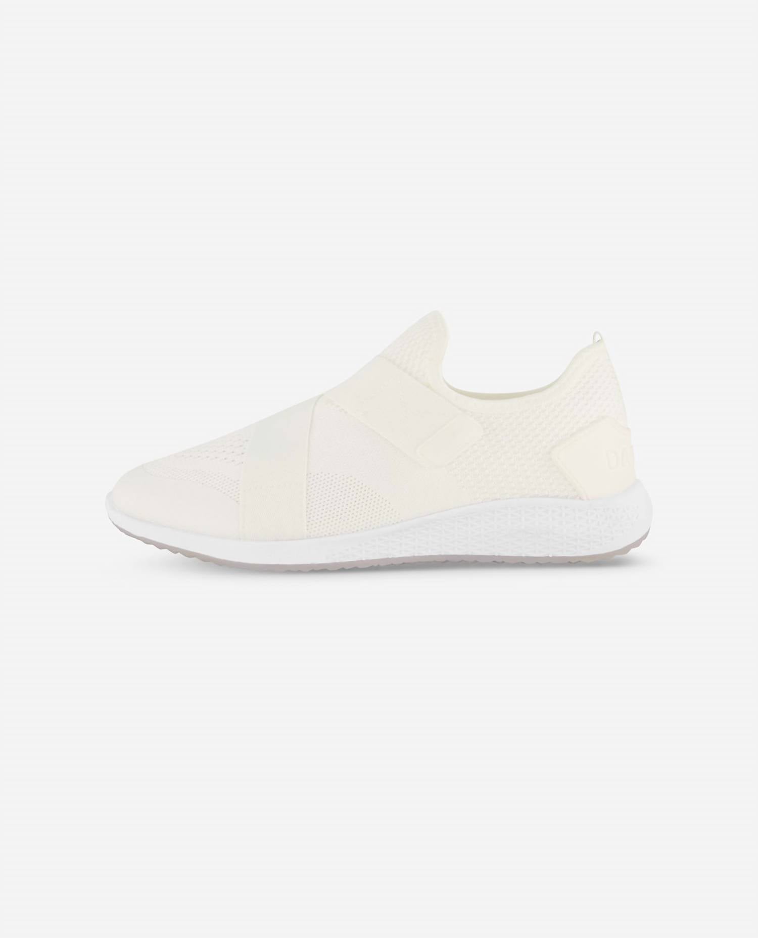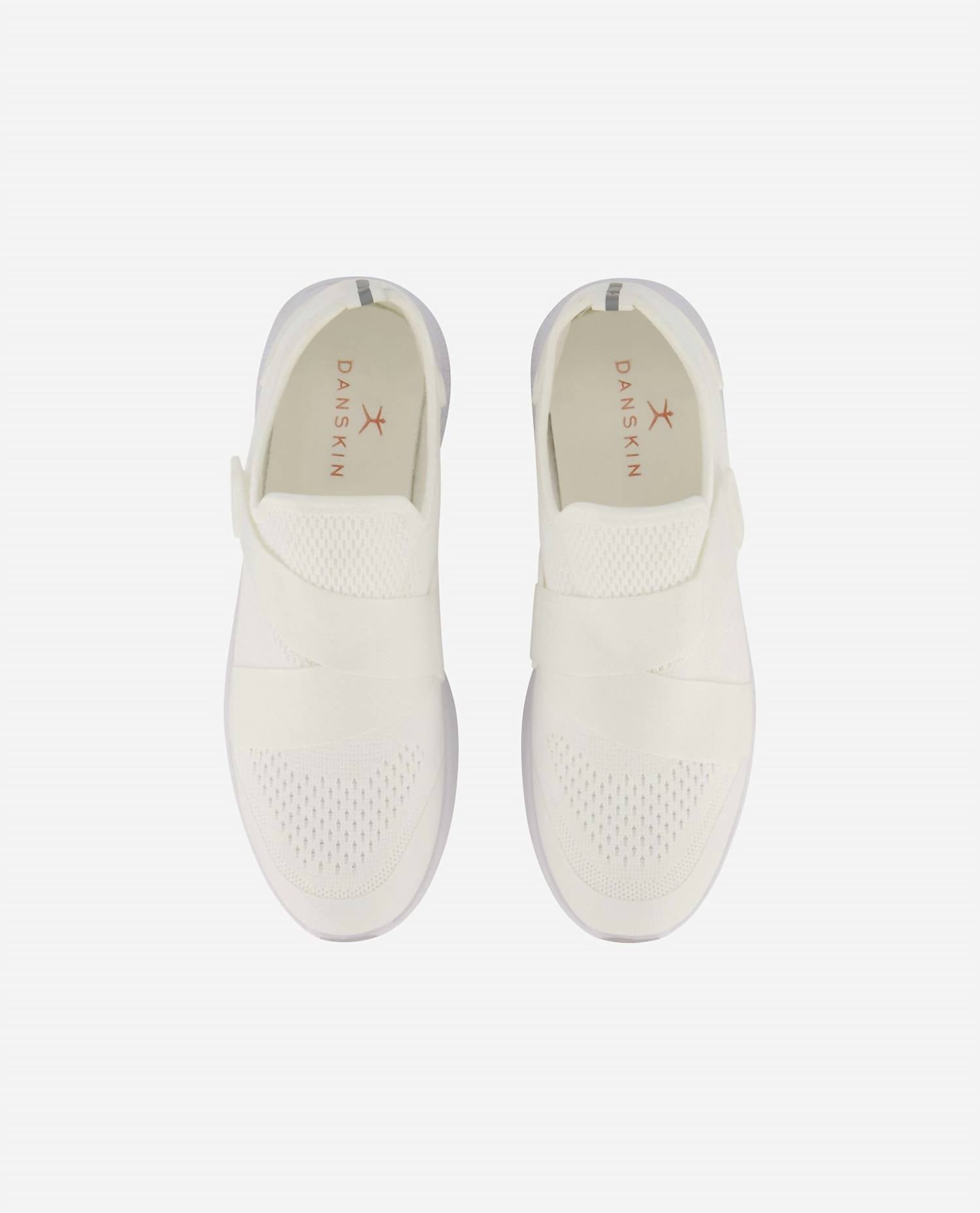 Step into comfort with the Unisex Encourage Strap Sneaker by Danskin, crafted for a perfect fit in sleek white. This sneaker features a convenient strap closure, supported by a durable rubber sole, and is designed with a loop at the heel for easy on and off. Material: 100% Polyester. Care: Wipe clean.