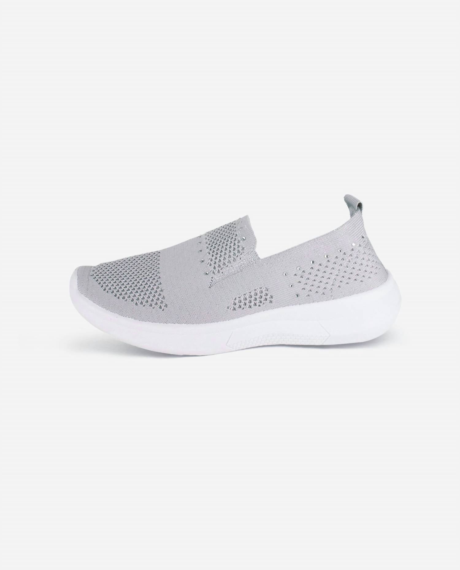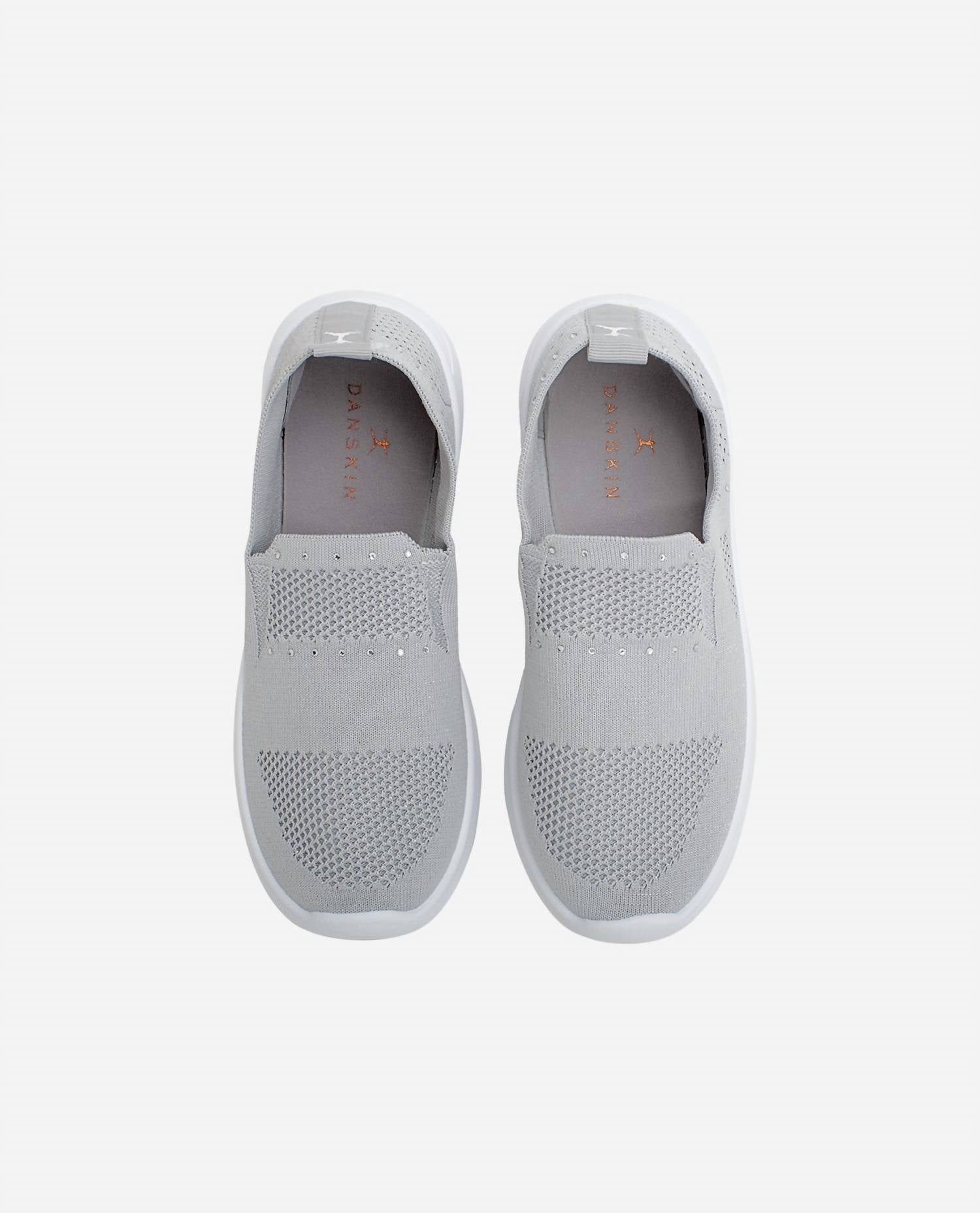 When fashion and function come together seamlessly. Step into summer with comfort and style in the Women's Allure Slip On Sneaker by Danskin, perfect for travel and minimalist fashion lovers. These light gray sneakers are crafted from 100% polyester fabric, featuring a shimmery knit and embellishments, making them both chic and durable. With a rubber sole and a round toe design, these sneakers provide a low heel height of 1 1/4"-2", ensuring all-day comfort. Closure is a convenient slip-on type, with a loop at the heel for easy on and off, and they can be easily maintained with a simple wipe clean.