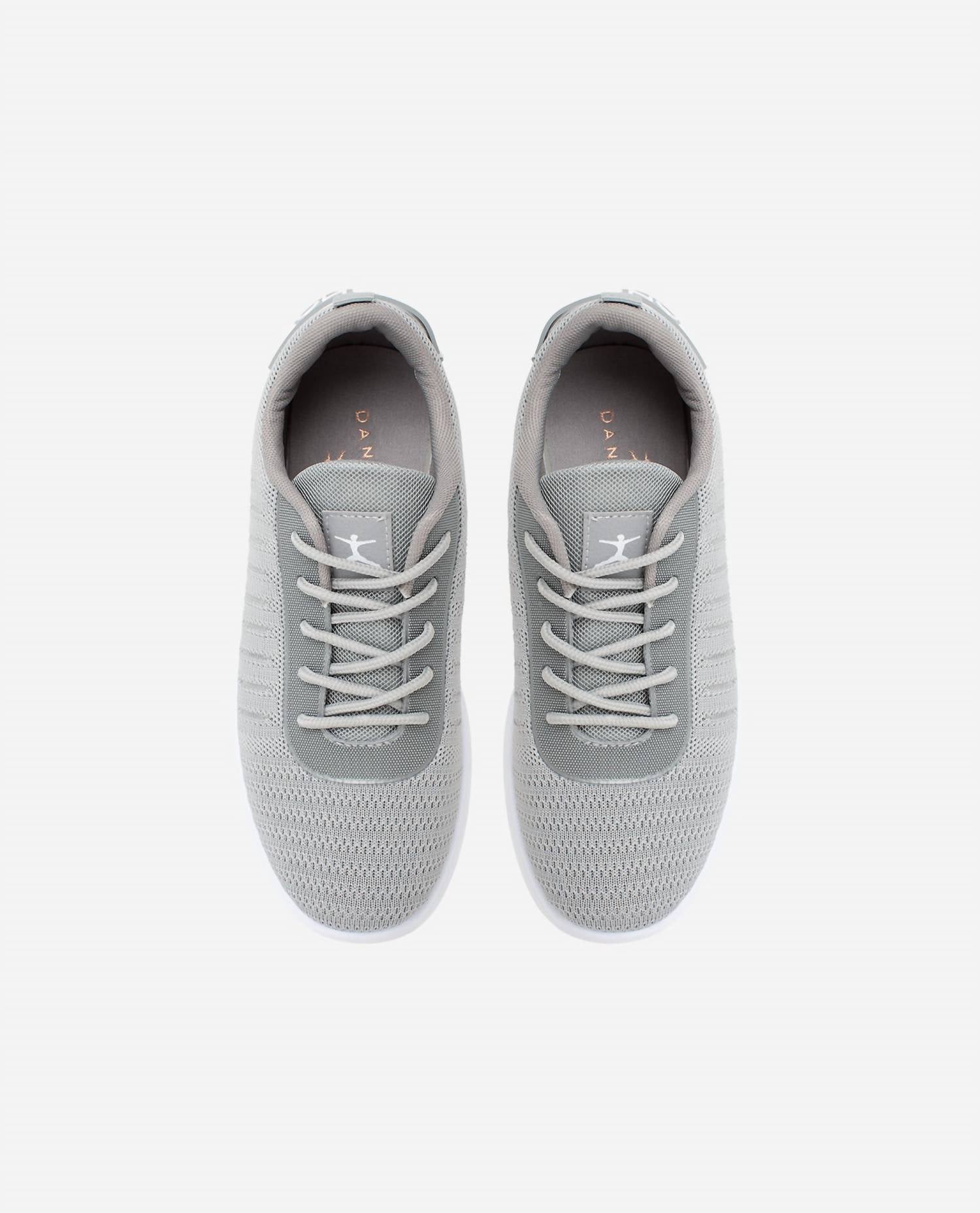 Cute, functional, and comfortable. These sneakers check all the boxes. Step up your fitness regimen with the Women's Boost Lace Up Sneaker by Danskin in a sleek Light Gray. Designed with 100% polyester fabric and a rubber sole, these sneakers ensure durability and comfort for athletic pursuits. They feature a convenient lace-up closure and a loop at the heel for easy on and off, making them perfect for your athleisure trends. These round toe sneakers fit true to size with a low heel height of 1 1/4" to 2". Care for these sneakers by simply wiping them clean.