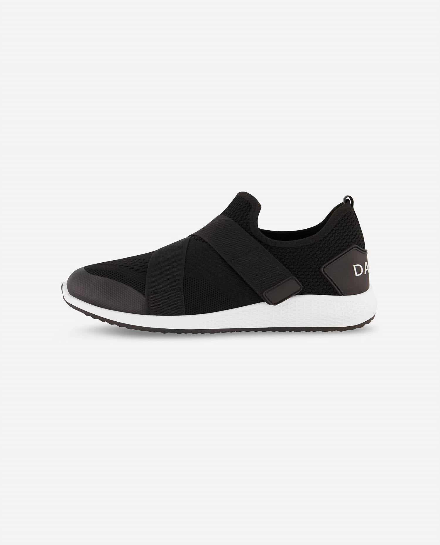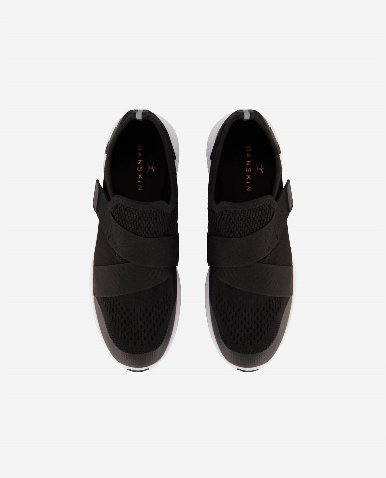 When fashion and function come together seamlessly. Introducing the Danskin Women's Encourage Strap Sneaker in classic black, crafted with a minimalist design perfect for travel and casual wear. Featuring a round toe and a low heel height between 1 1/4" to 2", these sneakers ensure comfort with every step. Made from 100% polyester, they include a convenient strap closure and a rubber sole for effortless movement. Designed with a loop at the heel for easy on-and-off, these sneakers fit true to size and are easy to maintain with a simple wipe clean.