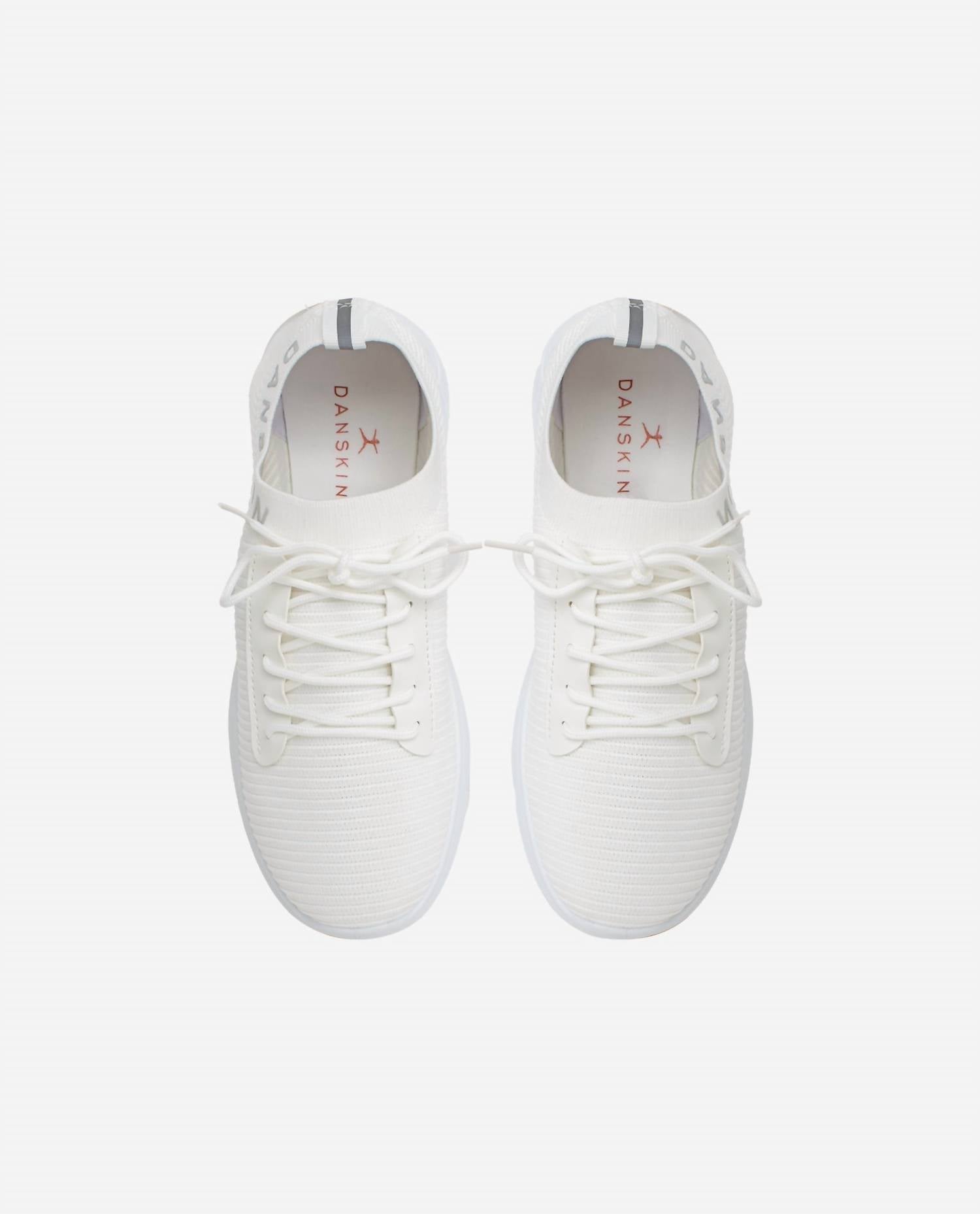 Get your daily steps in with these adorable sneakers. Step out in style with Danskin's Women's Epic Lace Up Sneaker, featuring a sleek wave knit upper and iconic logo detail. Designed with a cushioned insole for all-day comfort, these sneakers are made from polyester stretch knit, offering both durability and flexibility. The lace up closure ensures a secure fit, while the minimalist design and low heel height make them perfect for travel. Imported and easy to maintain, simply wipe clean to keep them looking fresh.