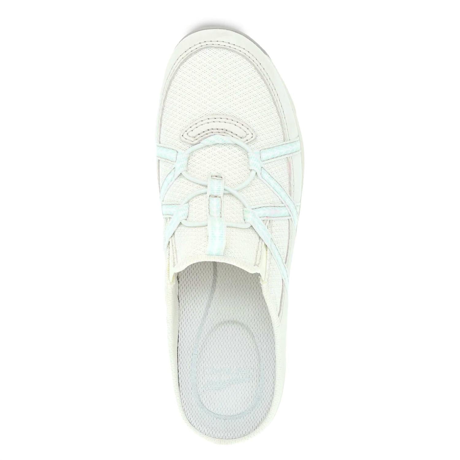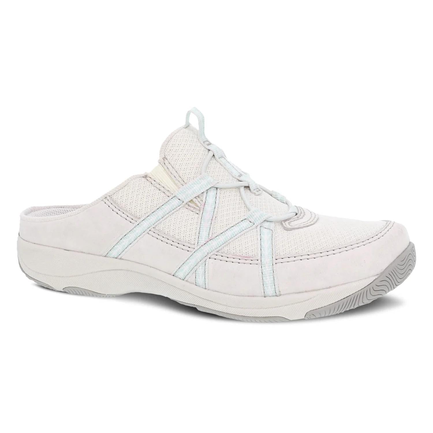 Cute, functional, and comfortable. These sneakers check all the boxes. Step into comfort and style with the Women's Hayleigh Mule Sneaker by Dansko, crafted in ecru suede. This open-back sneaker features an upper of chrome-free leather and recycled nylon, treated with 3M Scotchgard™ for stain resistance. Its moisture-managing lining and socklining offer odor control, while the removable EVA footbed with Dansko Natural Arch technology provides all-day comfort. With a 1" platform heel, this sneaker ensures stability through its lightweight EVA midsole and durable rubber outsole, making it a perfect fit for most orthotics.