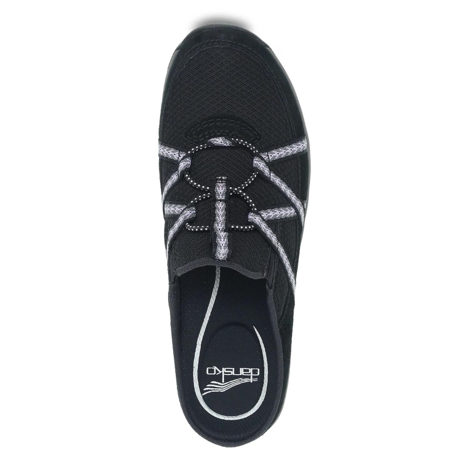 Step into effortless comfort with the Women's Hayleigh Mule Sneaker by Dansko, crafted in chic Black Suede. These sneakers feature an open-back design with an upper made from chrome-free leather and recycled nylon, ensuring both style and sustainability. The EVA midsole and footbed provide energy-returning comfort, complemented by a natural rubber outsole for durability. Enjoy moisture and odor control with Dri-Lex® Dri-Freeze lining and socklining, plus the versatility to accommodate standard or custom orthotics. The round toe and flat 1-inch platform heel complete this casual staple ideal for all-day wear.
