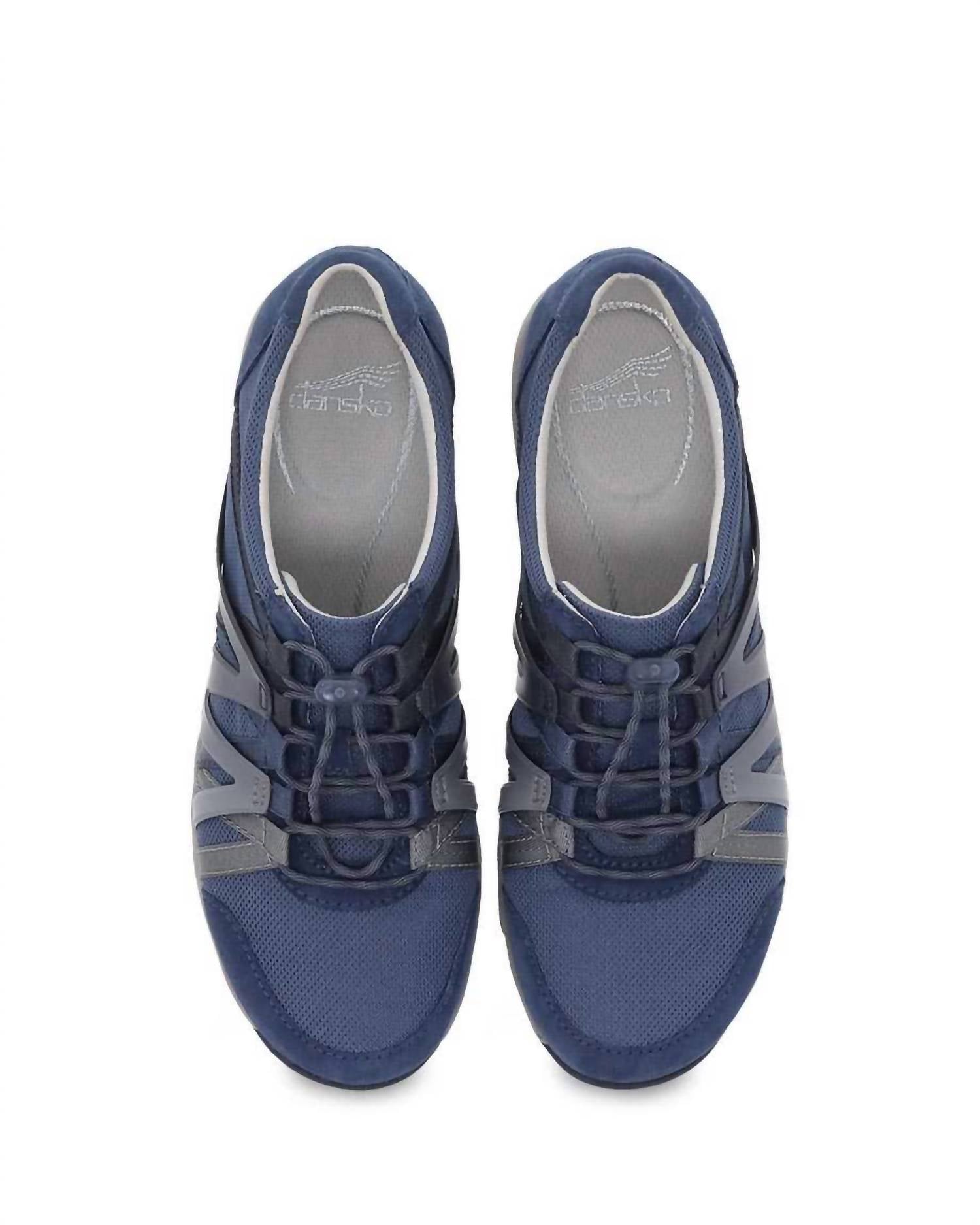 Discover the Women's Henriette Athletic Sneakers by Dansko, designed for those always on the move. These sneakers feature a sporty design with chrome-free leather and recycled nylon uppers, treated for stain resistance with 3M Scotchgard™. The Strobel construction offers flexibility, while Dansko Natural Arch® technology supports your foot's natural contours. Built with a light, energy-returning EVA midsole and natural rubber outsole for durable comfort, these sneakers are perfect for travel or daily wear.