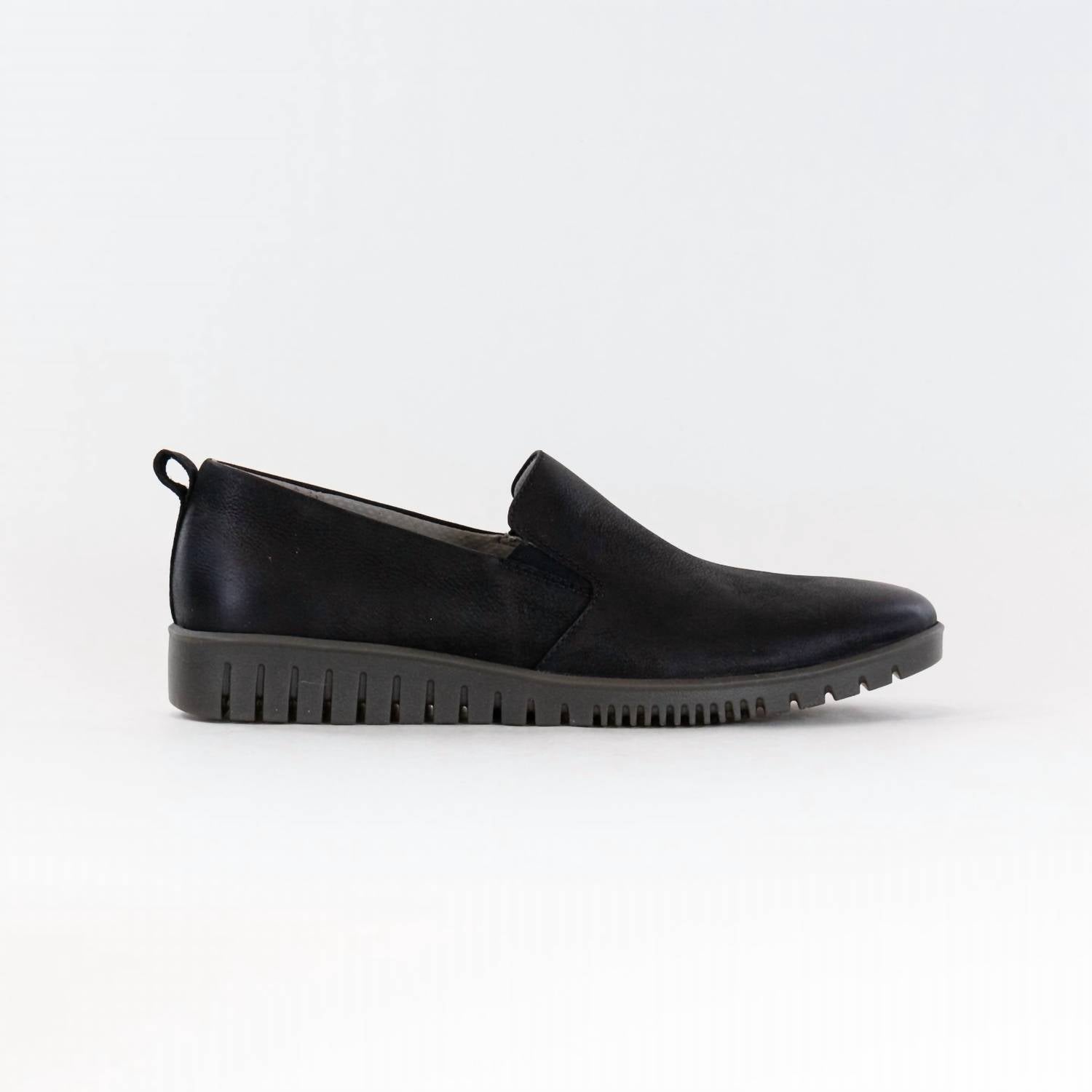 A classic loafer that is both comfortable and polished. Introducing the Dansko Women's Linley Flat Sandal in a sleek black color, perfect for a minimalist look at any evening event. Crafted with leather uppers, this sandal features Dansko Natural Arch® technology in a chrome-free leather covered, removable EVA footbed for superior all-day support. The design incorporates Dri-Lex® Dri-Freeze® Eco vamp linings with cooling technology and Aegis® Microbe Shield for optimal comfort and odor control. Experience durability with full strobel construction and a lightweight blown rubber outsole for long-lasting wear.