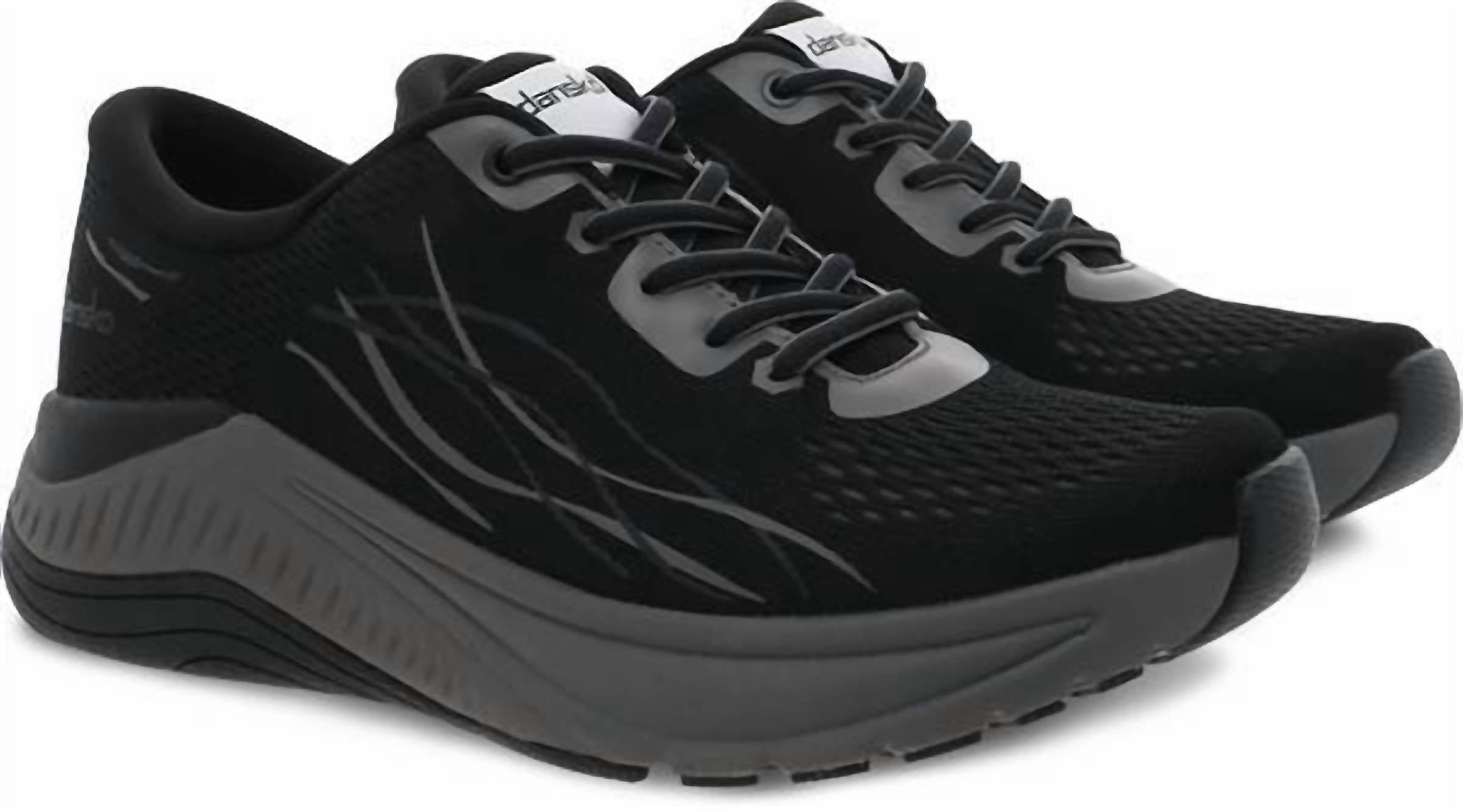 Cute, functional, and comfortable. These sneakers check all the boxes. The Dansko Women's Pace Walking Shoe in Black/Grey Mesh is a sleek and sporty sneaker designed for comfort and style during your daily activities. Featuring recycled mesh uppers treated with 3M Scotchgard™ protector, these shoes offer stain resistance with a moisture-management system for freshness. These shoes ensure comfort with their lightweight, cushioned EVA midsoles and Dansko Natural Arch Plus™ technology, providing added arch support and heel stability. Ideal for low heel enthusiasts, the Pace sneakers deliver durable wear with a lightweight rubber outsole.