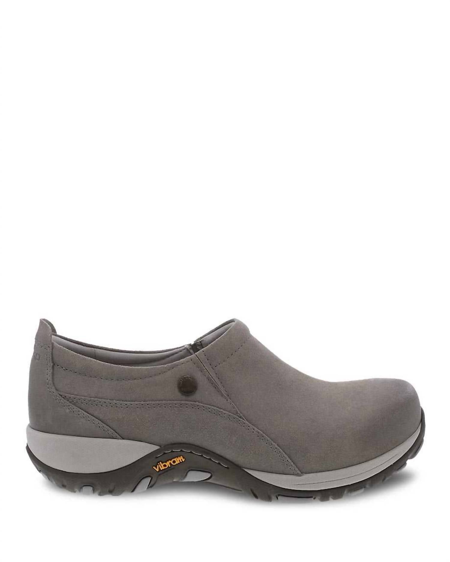 Get your daily steps in with these adorable sneakers. Enhance your spring wardrobe with the Dansko Women's Patti Shoes in Burnished Suede Taupe, designed for both style and comfort. These flat-heeled sneakers feature waterproof leather uppers and a removable triple-density footbed for superior arch support and shock absorption. Slip-resistant Vibram® rubber outsoles provide stability on various surfaces, while DuPont™ Sorona® fibers and CleansportNXT™ ensure moisture management and odor control. With a round toe shape and 1.5" heel height, these shoes are perfect for a minimalist look at your next Thanksgiving dinner party.