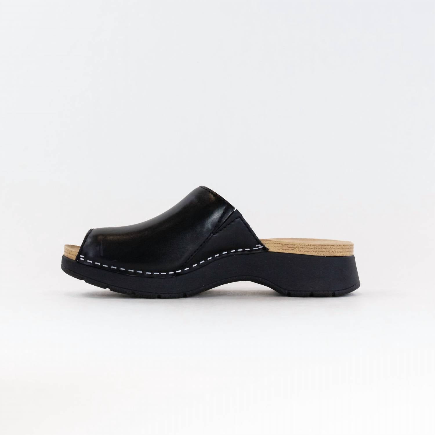 This sandal will take you from brunch to dinner and everything in between. Introducing the Women's Ravyn Nappa Sandals by Dansko, a sleek addition to your footwear collection in classic black. These peep toe sandals feature high-quality leather uppers with a soft lining for all-day comfort. The sandals boast a chrome-free suede socklining and a cushioned energy-return PU footbed. With a lightweight, contoured BPU midsole and a flexible TR rubber outsole, these minimalistic sandals are made for effortless style and comfort during dinner parties or spring outings.