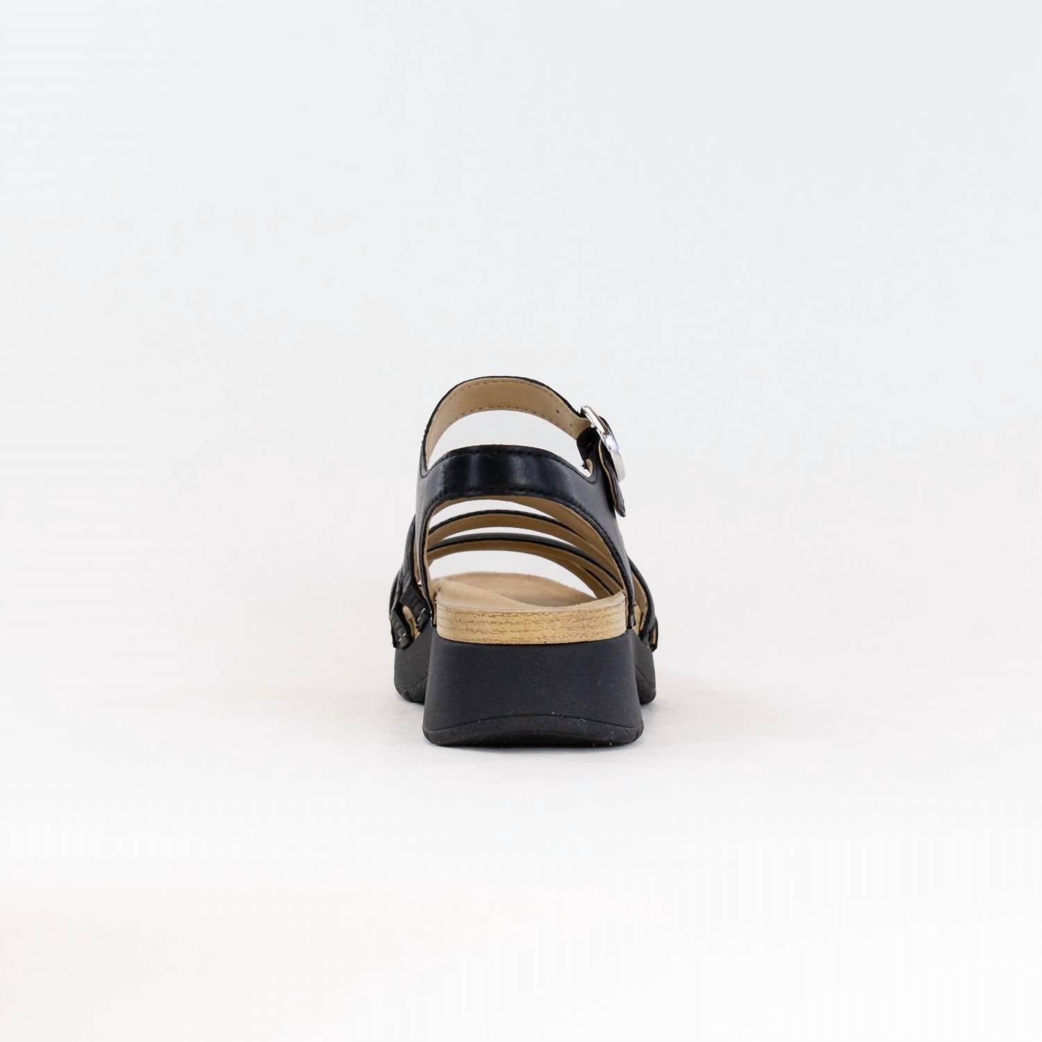 This sandal will take you from brunch to dinner and everything in between. Step into style with the Women's Roxie Sandal by Dansko, a minimalist choice perfect for a dinner party. This sandal features simple straps in black, made from high-quality leather for a sophisticated touch. Designed with patented stapled construction, it includes a soft lining, chrome-free suede socklining, cushioned energy-return PU footbed, and a lightweight, contoured BPU midsole for unparalleled comfort. The flexible TR rubber outsole ensures ease of movement, while the open toe and flat heel make it ideal for the spring season.