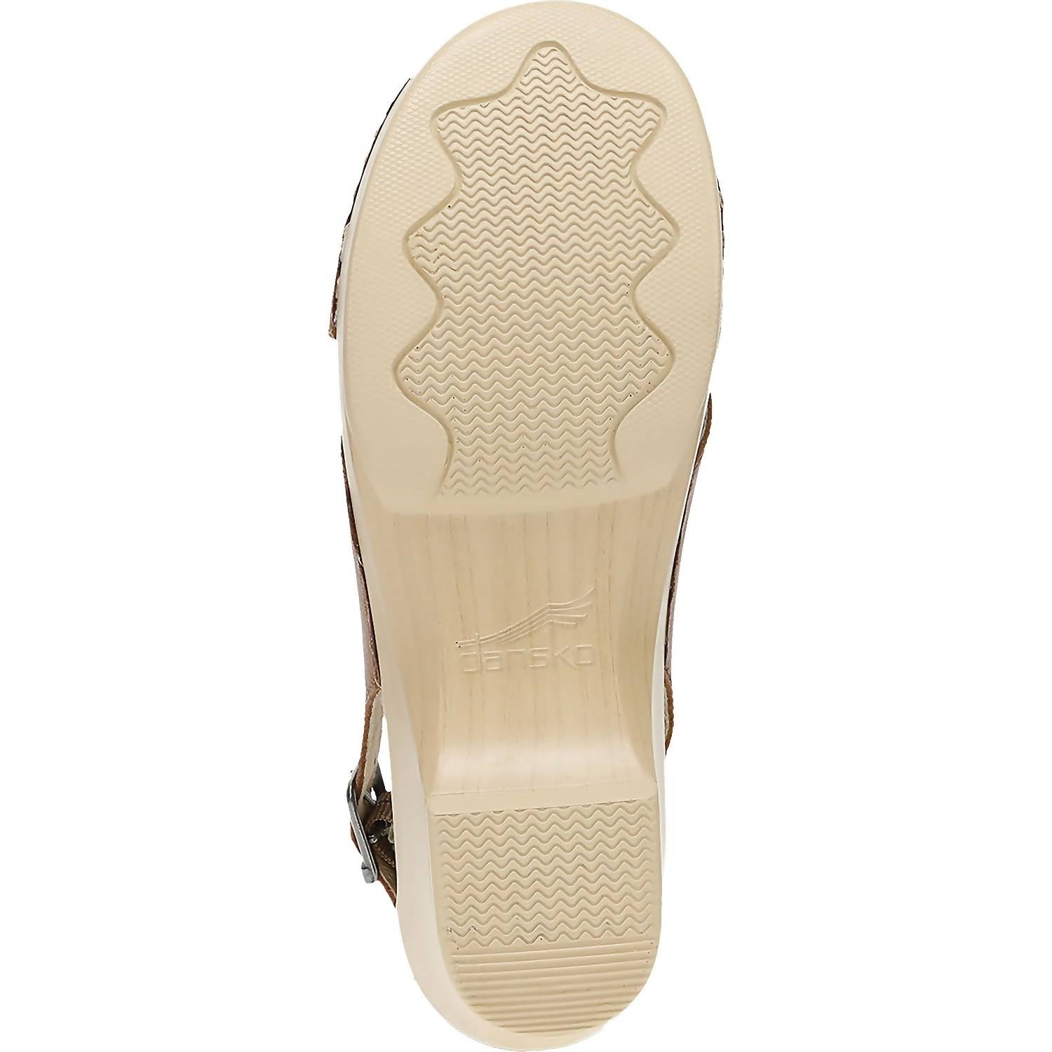 This sandal will take you from brunch to dinner and everything in between. Step into comfort and style with the Dansko Women's Sloane Leather Sandals in Tan Calf, perfect for your summer adventures. Crafted with leather uppers and boasting a Dri-Lex® sock lining, these sandals ensure your feet stay dry and odor-free. The shock-absorbing foam midsole and additional EVA insert offer supreme cushioning, while a lightweight nylon shank provides added support. Designed with a 2 1/4-inch wedge heel and a durable PU outsole, these sandals deliver both stability and a boho chic look. Suitable for medium width, round toe, and APMA accepted for assured comfort.