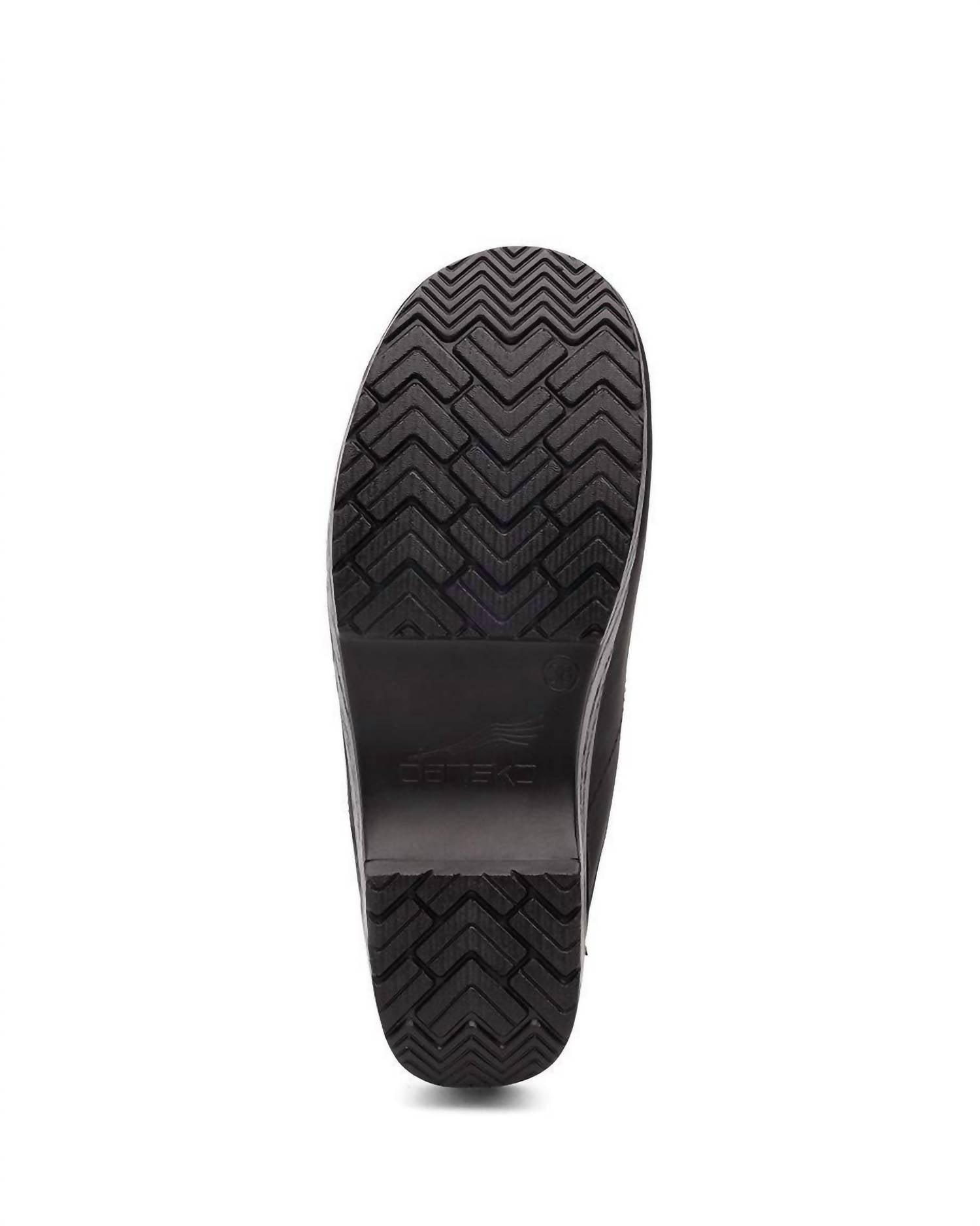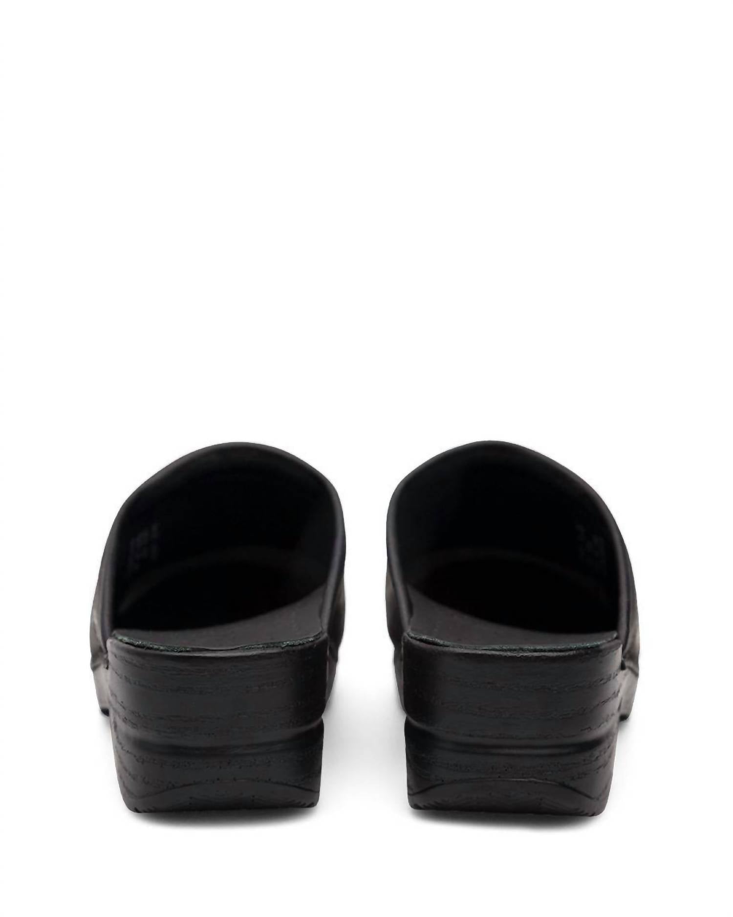 Stylish, comfy, and versatile. We can't find anything wrong with these. Featuring a roomy reinforced toe box, the Women's Sonja Clog Shoes by Dansko are designed for women seeking comfort and style. Crafted with an anatomically contoured PU midsole and a padded instep collar, these clogs offer stability and support with every step. The open-back design and anti-fatigue rocker bottom enhance forward motion, making them perfect for a minimalist spring look or a festive Thanksgiving dinner party. Made from oiled leather in a classic black, these mules boast an almond toe shape and a platform heel.
