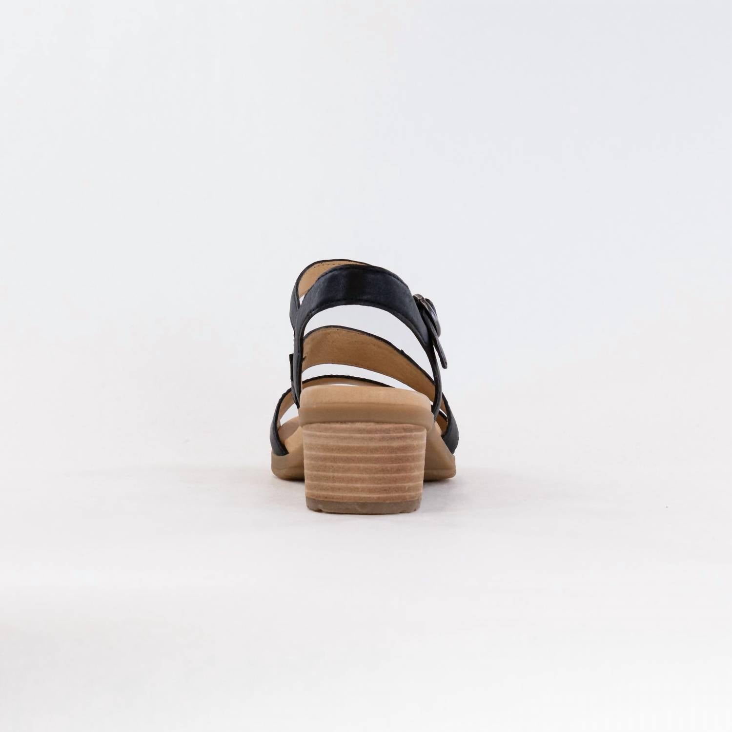 Elevate your evening look with the Women's Tansy Sandal by Dansko in Black Nappa, a perfect fusion of elegance and comfort. The sandal's high-quality leather upper is paired with a chrome-free leather lining for a luxurious feel, while the contoured EVA footbed with memory foam offers exceptional cushioning. It features a durable TR rubber outsole with a 2.25-inch leather-stacked block heel, and a 0.75-inch platform for added stability. Ideal for spring occasions, these minimalist sandals comply with contemporary trends, perfect for a Thanksgiving evening event.