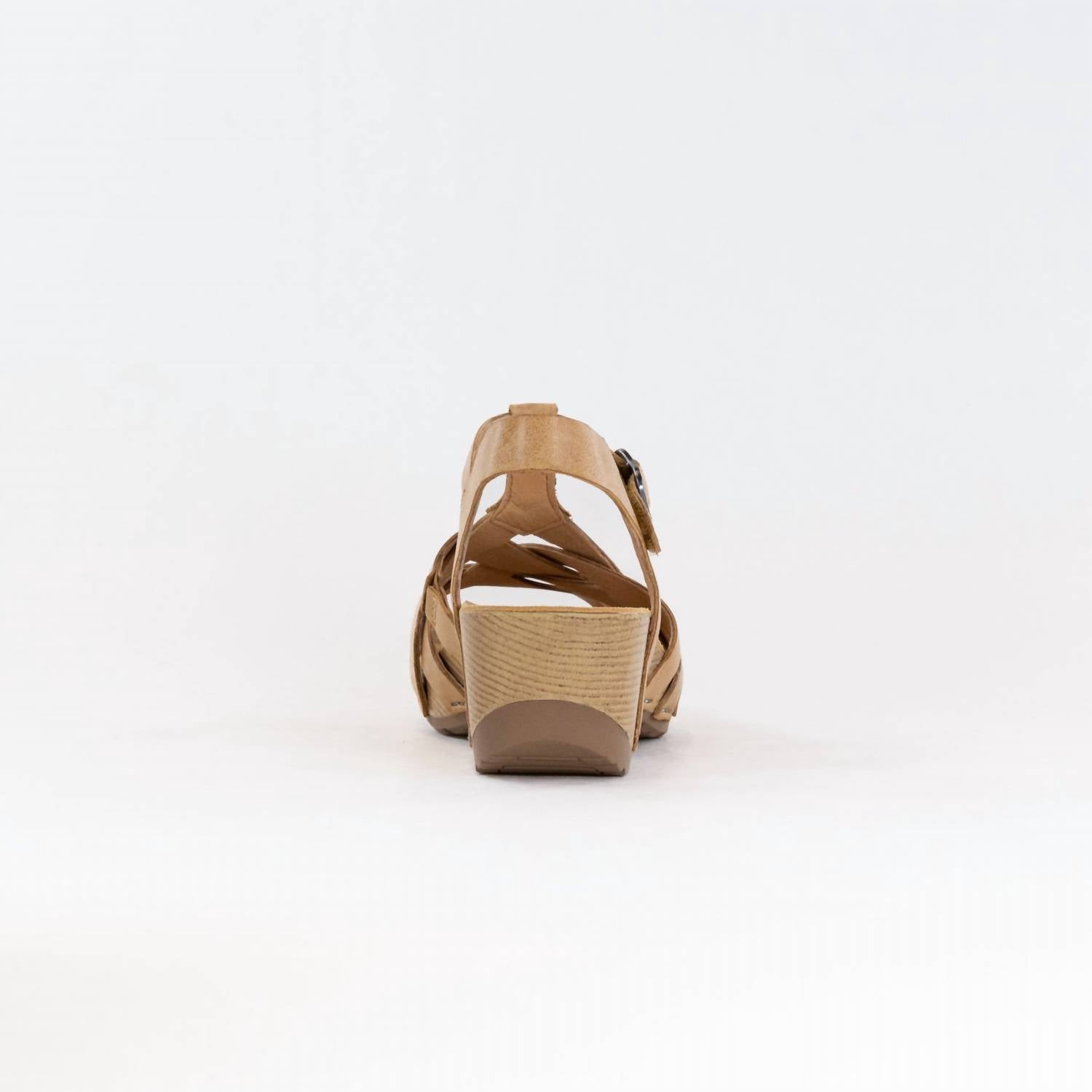 Classicly cute and all-day-wearable. We love this sandal. Introducing the Women's Tinley Sandal by Dansko, a perfect blend of comfort and boho chic aesthetics for your summer wardrobe. Crafted with distinctive woven tan milled burnished leather uppers, these sandals promise breathability through leather lining and comfort with a cushioned energy-return PU footbed. Designed for versatile wear, they feature a peep toe and a wedge heel, enhanced by a lightweight contoured PU midsole and rubber outsole for durability. Closure is provided with hook and loop adjustability, making them ideal for vacation occasions and Easter celebrations.