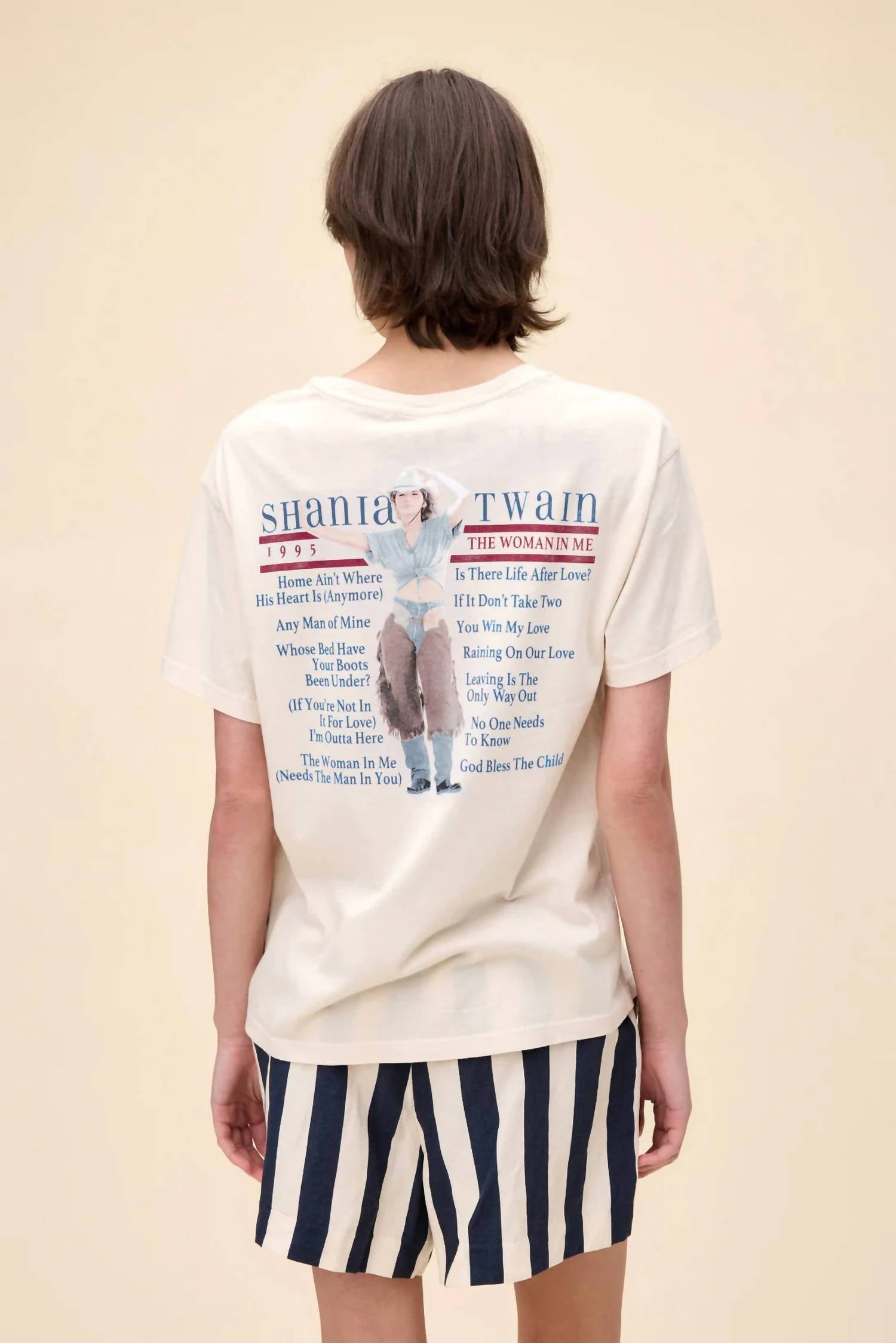 Discover the Shania Twain Woman In Me Tee by DAYDREAMER, a spirited piece in a neutral beige hue adorned with a graphic design that celebrates the iconic Shania Twain. This tee offers a classic crewneck with short sleeves, perfect for casual streetwear or a cozy Thanksgiving gathering. Material: Cotton. Closure: Easy pull-on style.