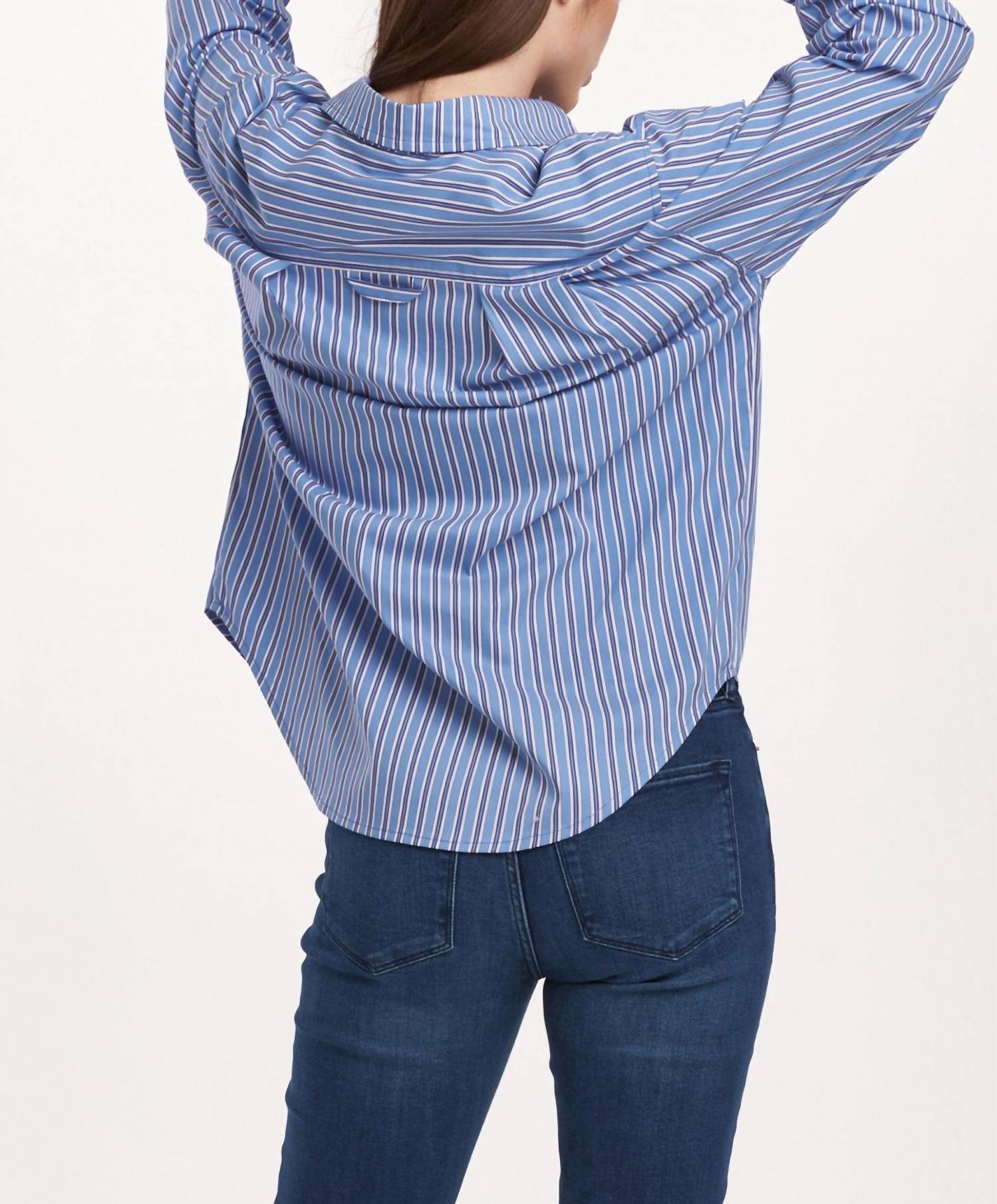 This button down shirt is comfortable yet polished. Elevate your summer wardrobe with the Lola Novelty Shirt by DEAR JOHN DENIM, a stylish nod to '90s fashion. This button-down shirt in Blue Lines features long sleeves and a classic collar for a polished look. Crafted from cotton, it's designed with convenient pockets and a stripe pattern. Care for your shirt with ease: machine wash and tumble dry. Perfect for vacation or casual outings.
