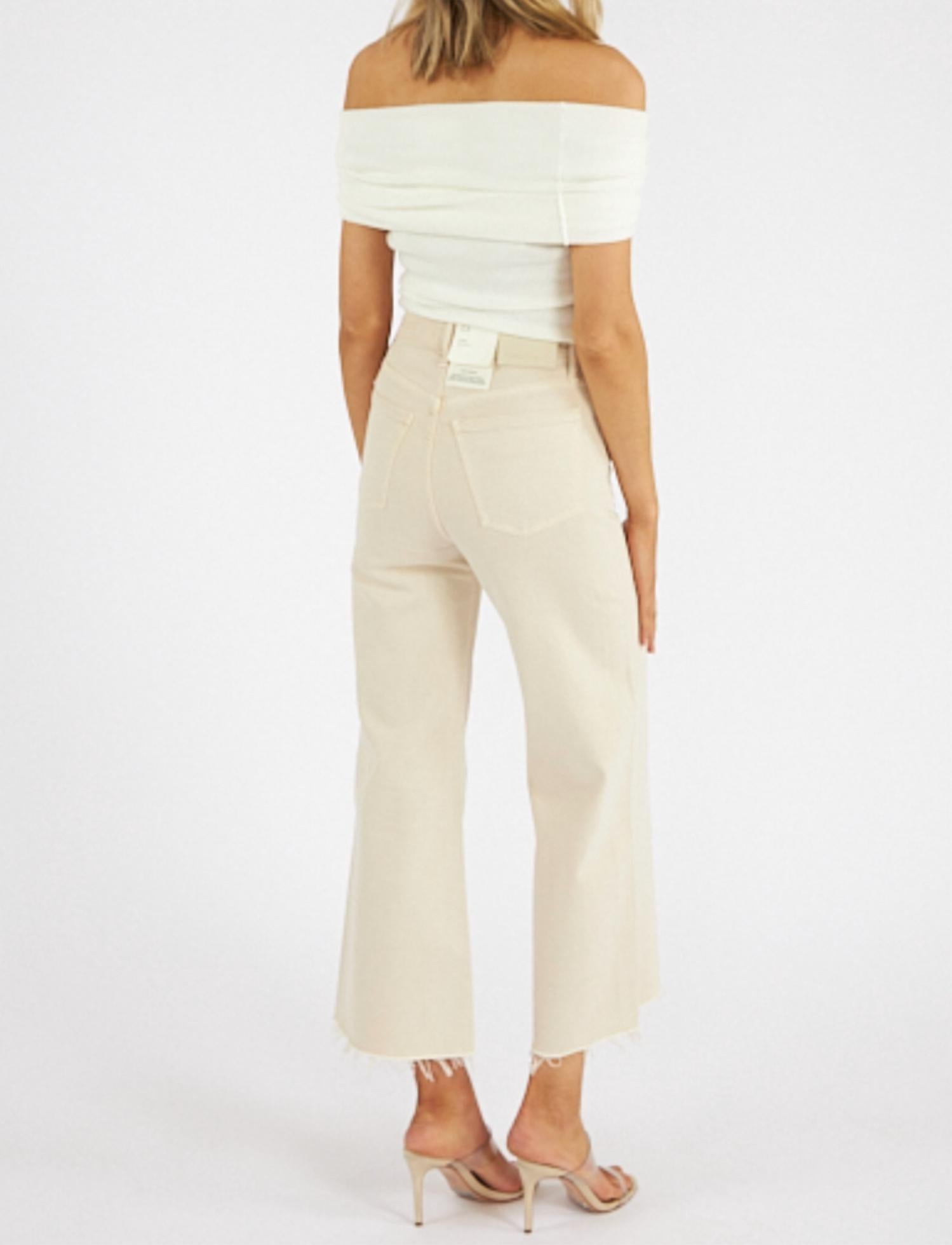 A versatile blouse that works from desk to dinner! Elevate your style with the Porto Knit Top by Dèluc, crafted in a sophisticated ecru hue. This sleeveless top features a chic off-the-shoulder design with a ruched foldover for added texture and a hip-length cut, perfect for any minimalist vacation wardrobe. Composition: 60.8% Viscose, 39.2% Polyamide. Closure: Pull-on style. Care: Hand wash, lay flat to dry.