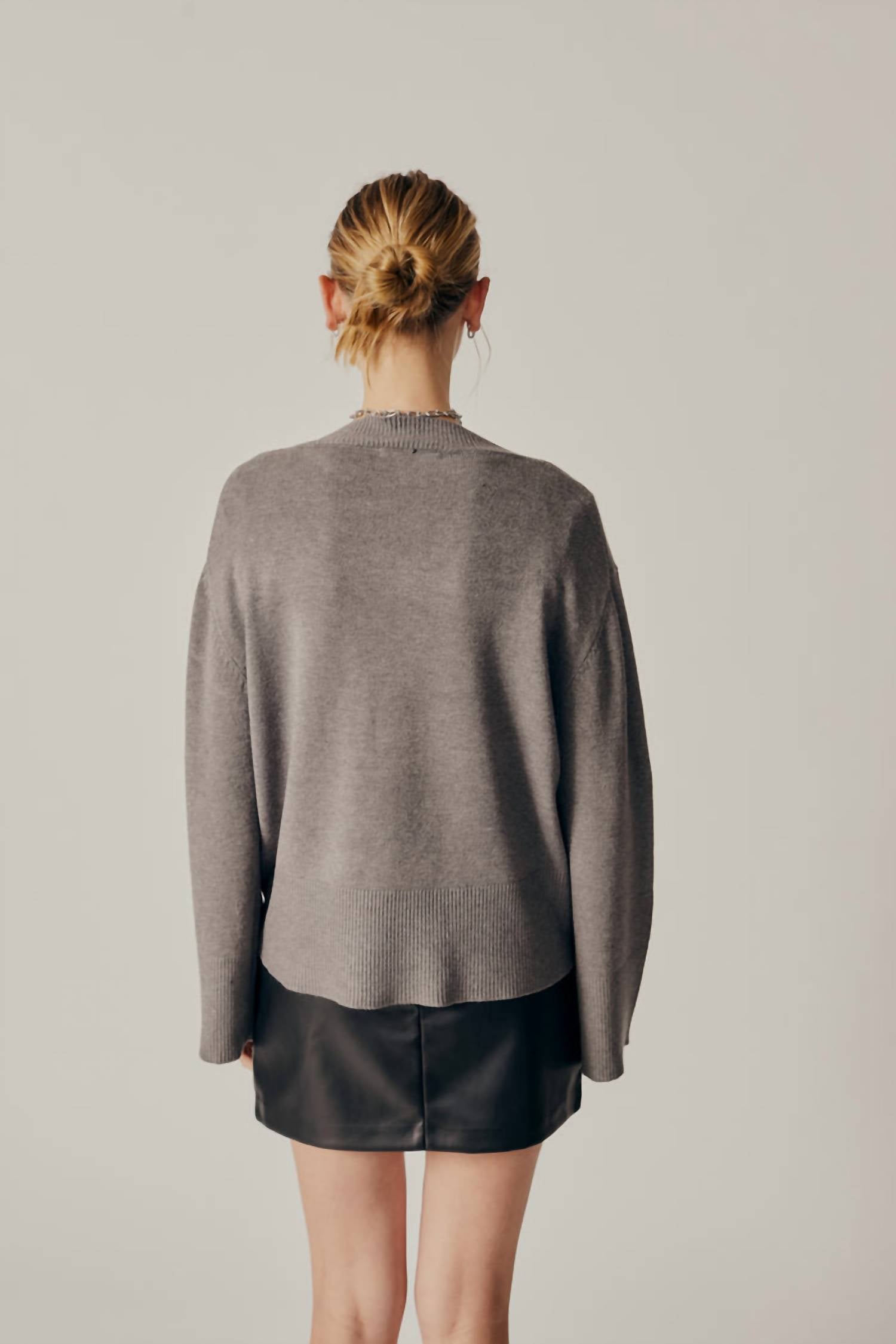 You'll be reaching for this comfy and classic v-neck sweater all season long. Elevate your wardrobe with the V-neck Sweater from DELUC, a perfect blend of style and comfort. This women's piece features long wide sleeves in a solid gray color, bringing a chic touch to your ensemble. Composition: Viscose blend. Closure: Pull-on style. Care: Machine wash.