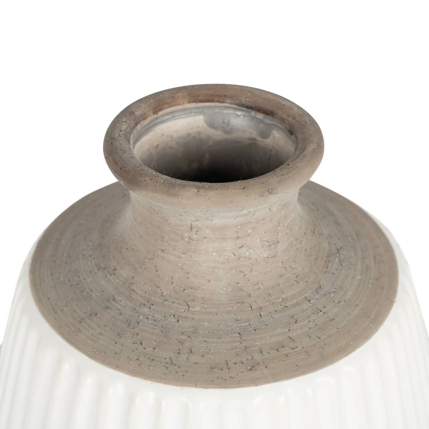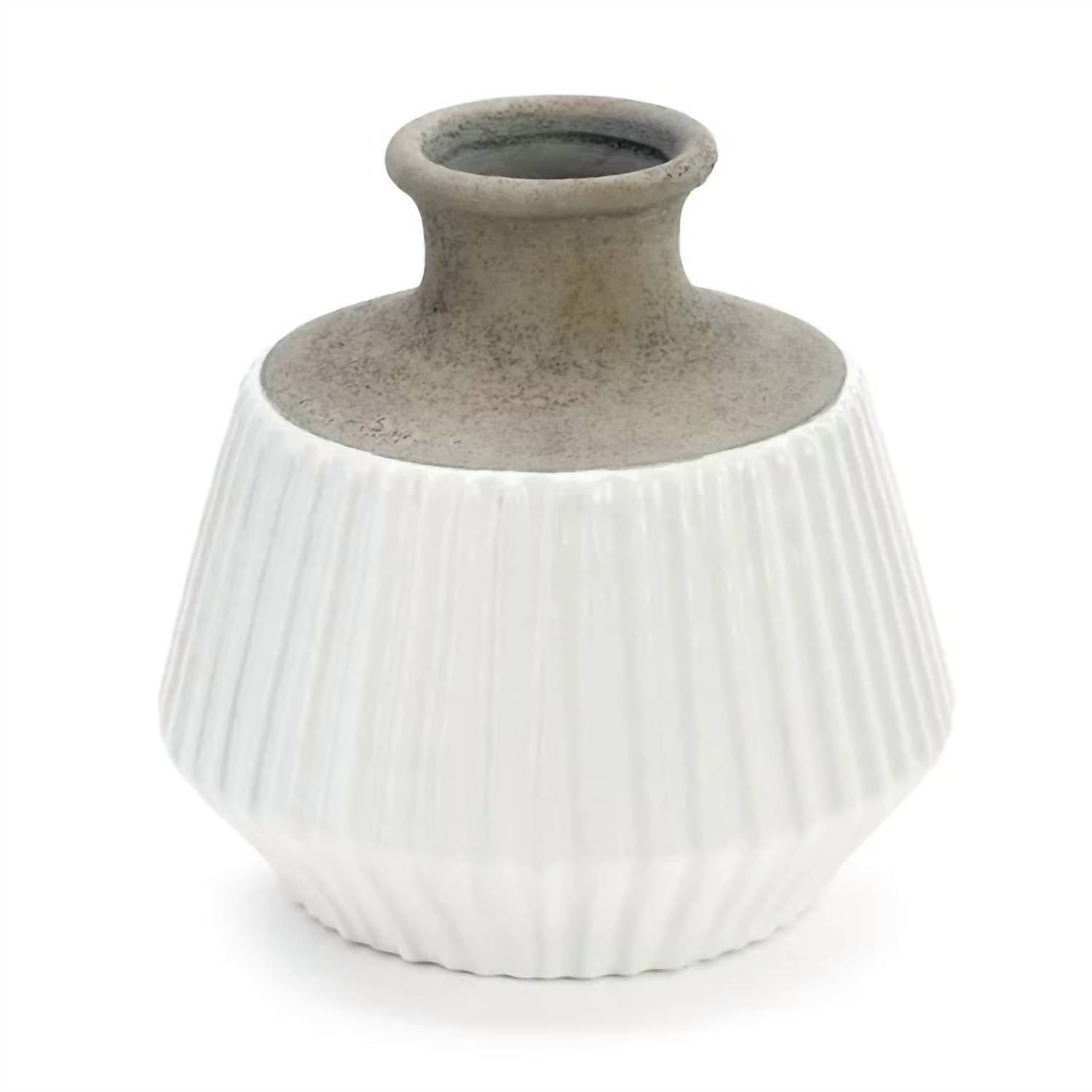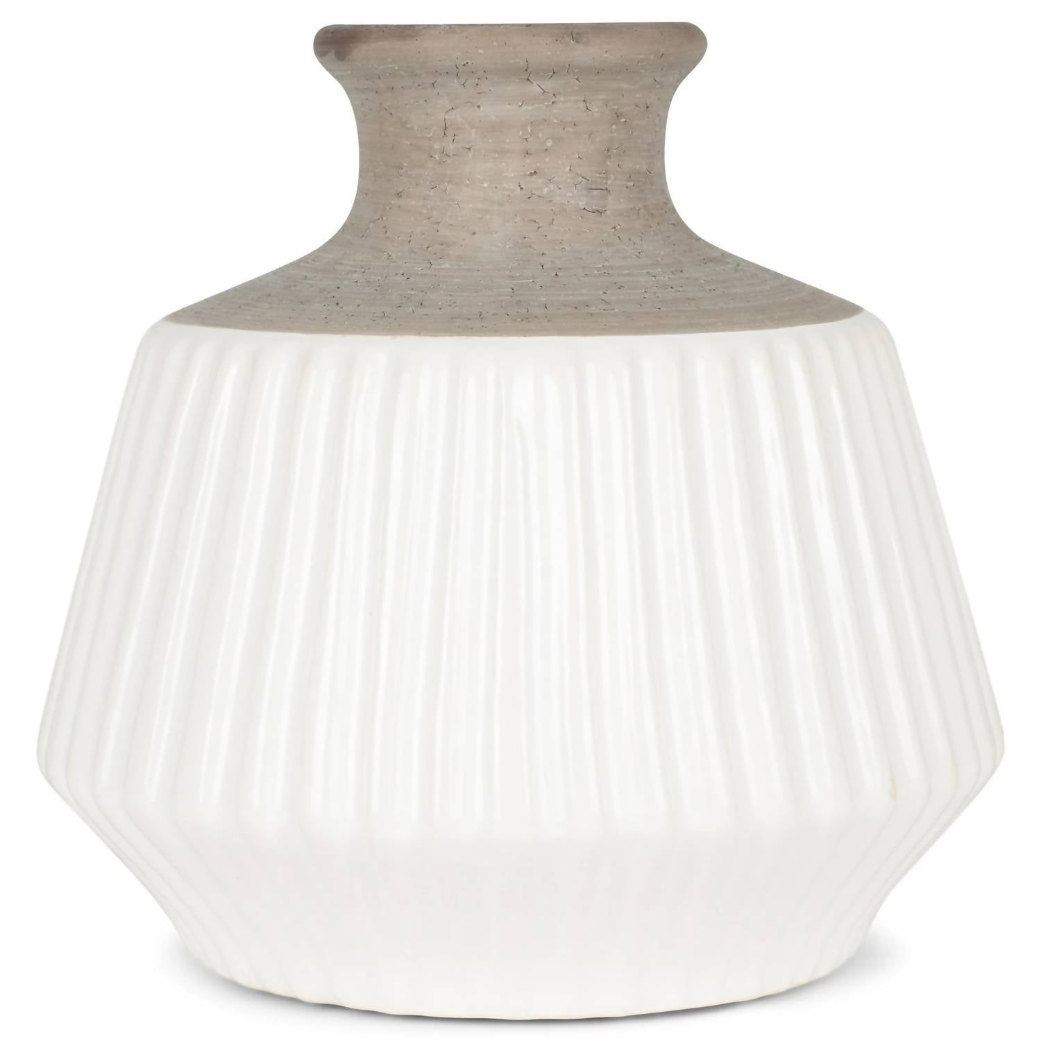Made of textured ceramic stoneware with glossy grey and white finish. Handwash only. Measures approximately 9 x 8 x 8 inches. Neutral tones.