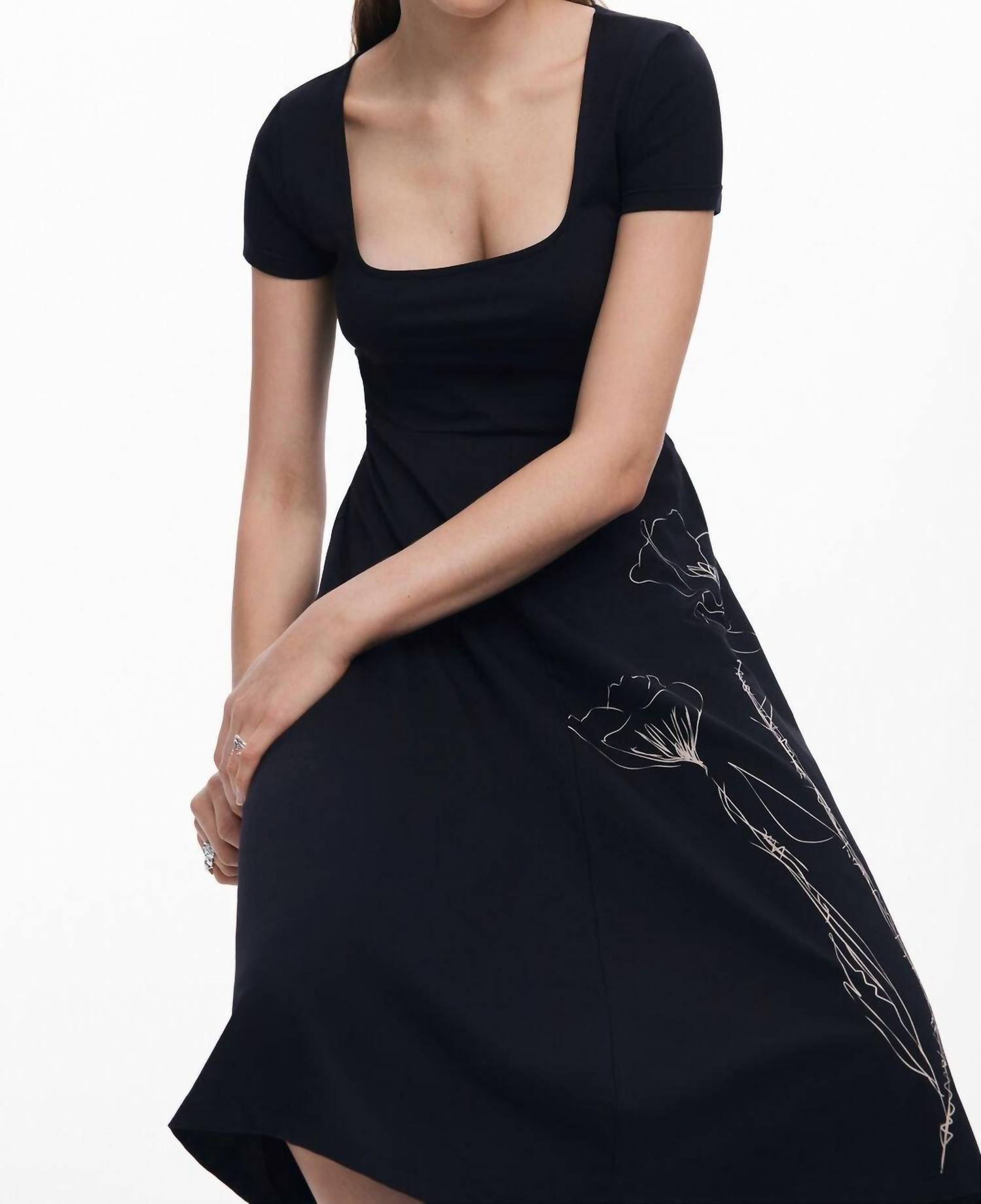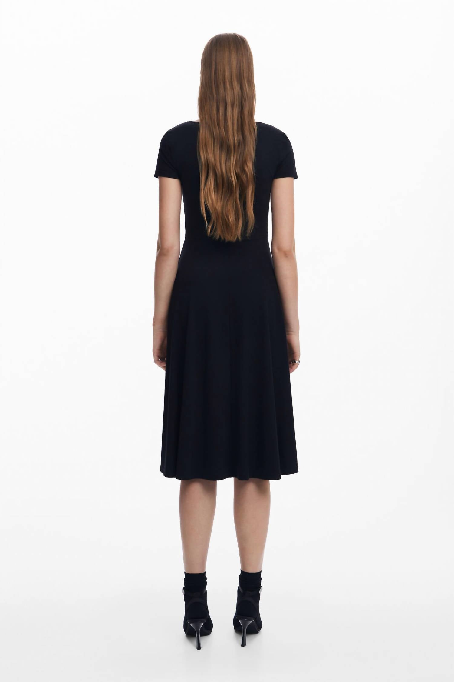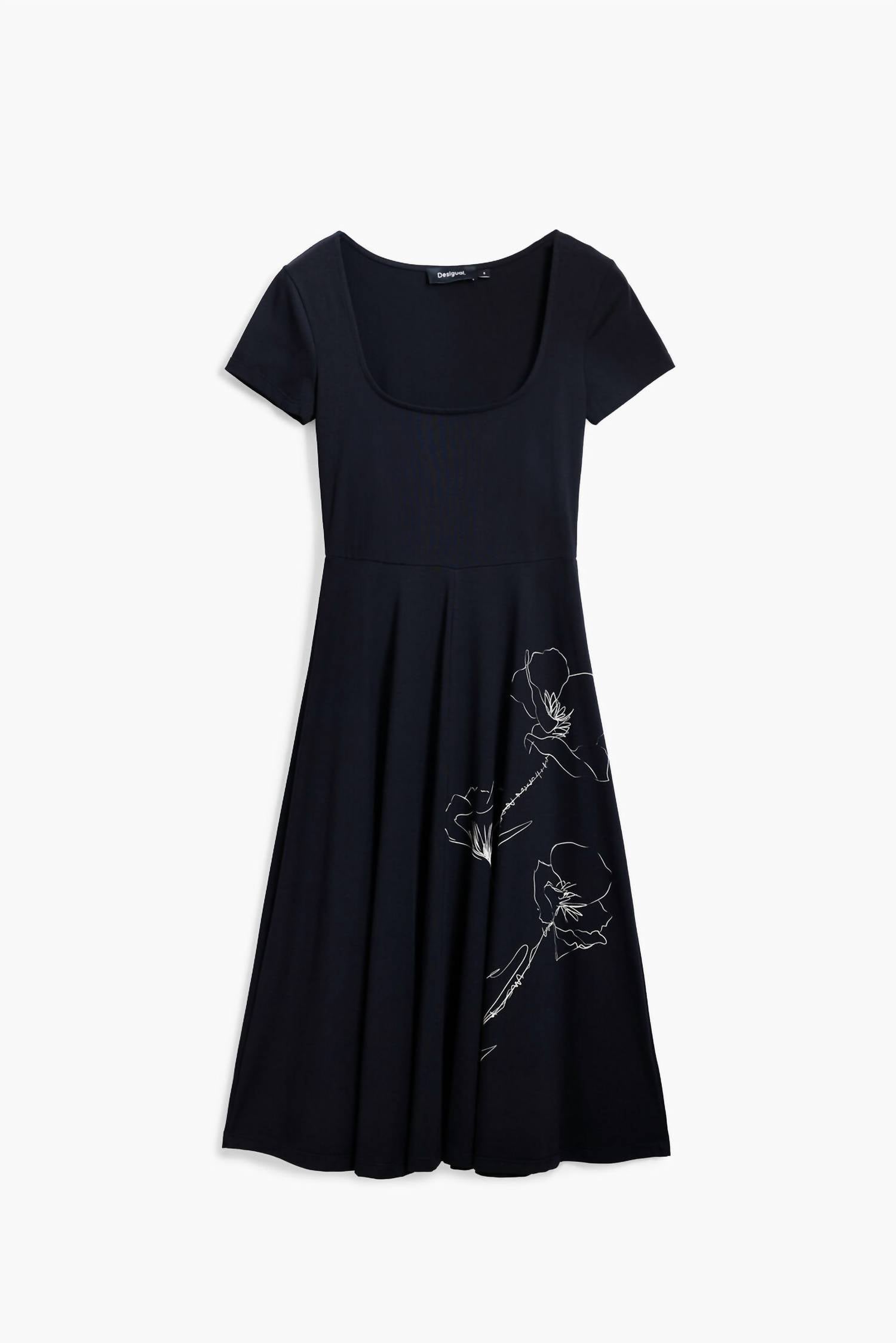 A midi dress so versatile, your options for wearing it are endless. Cotton midi dress with an open neckline and a flared skirt featuring a silhouette floral print. Model’s measurements: Height: 180 cm; Waist: 63 cm; Hip: 93 cm Model size: M