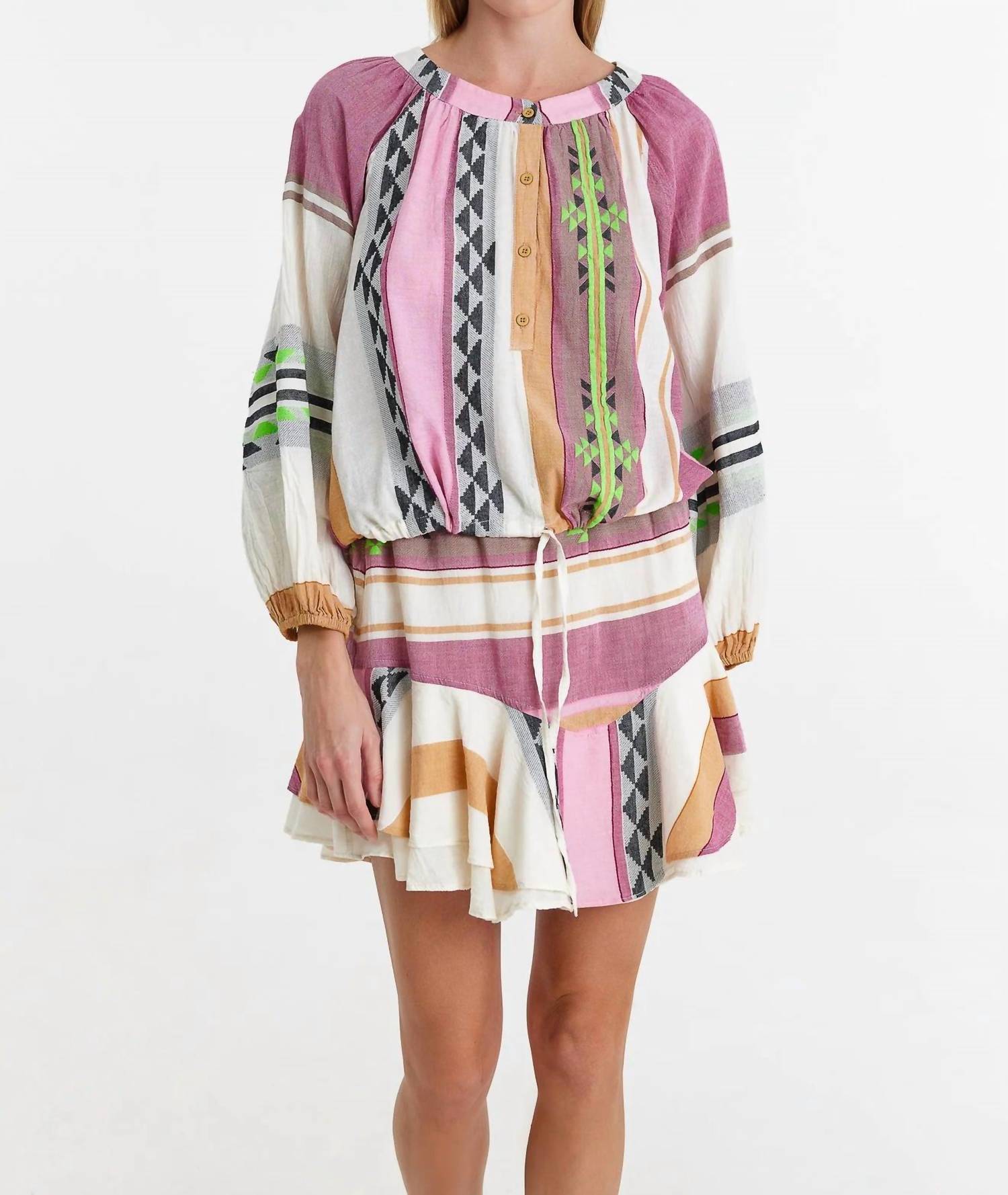 Pair this with your favorite jeans and slides for your next girls night out. Introducing the Kassiani Blouse by DEVOTION TWINS, a must-have piece for your spring wardrobe. This breathable, patterned blouse in pink and green features long balloon sleeves with elastic cuffs and a V-neckline. Crafted from 65% cotton and 35% polyester for a comfortable fit, it's tailored with tie straps and has a pull-on closure. Care for this boho-chic staple by machine washing and line drying.