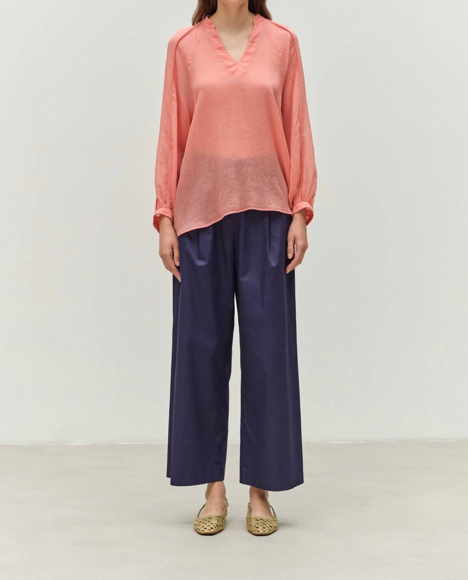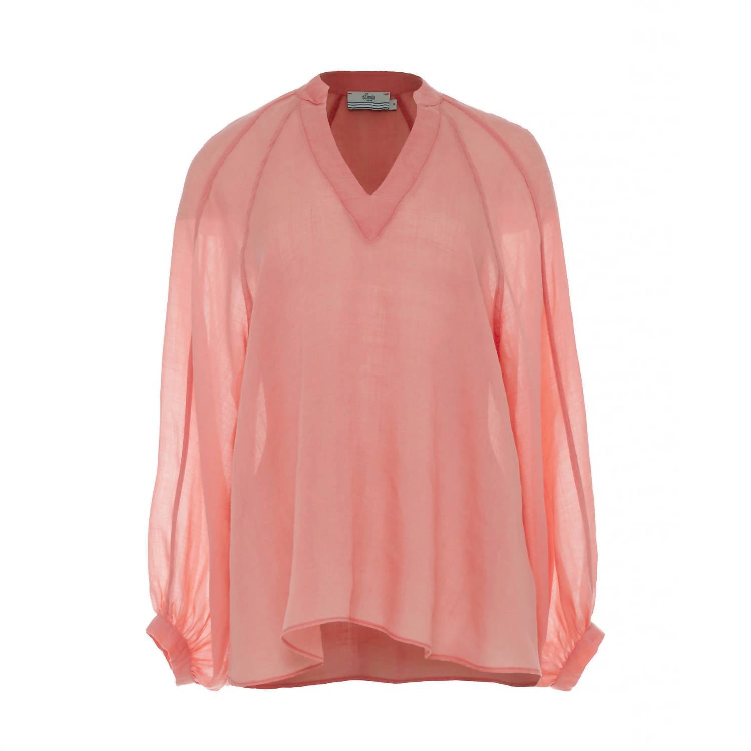 A versatile blouse that works from desk to dinner! Introducing the Meraki Top by DEVOTION TWINS, a boho chic essential for any special occasion. Crafted in a stunning coral hue, this long sleeve blouse showcases a flattering V-neckline for added elegance. Composed of 48% ramie and 52% lyocel, this top offers a lightweight feel perfect for spring celebrations like Mother's Day and anniversaries. Featuring a pull-on closure, this blouse should be hand washed to maintain its quality and vibrance.