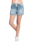 Short and sweet with rolled cuffs| these denim shorts from Dickies put the awe in awesome.| Approx. inseam; 3| Front rise; approx. 9-1/4; leg opening; 22| Zipper and button closure at front; belt loops | Rolled cuffs; removable shoestring belt; logo detail at back right pocket| 100% cotton