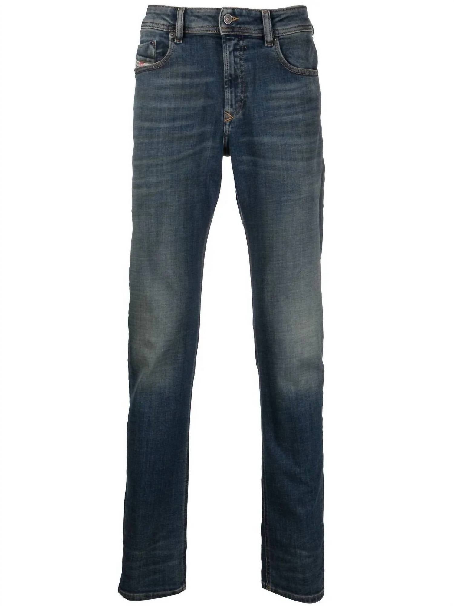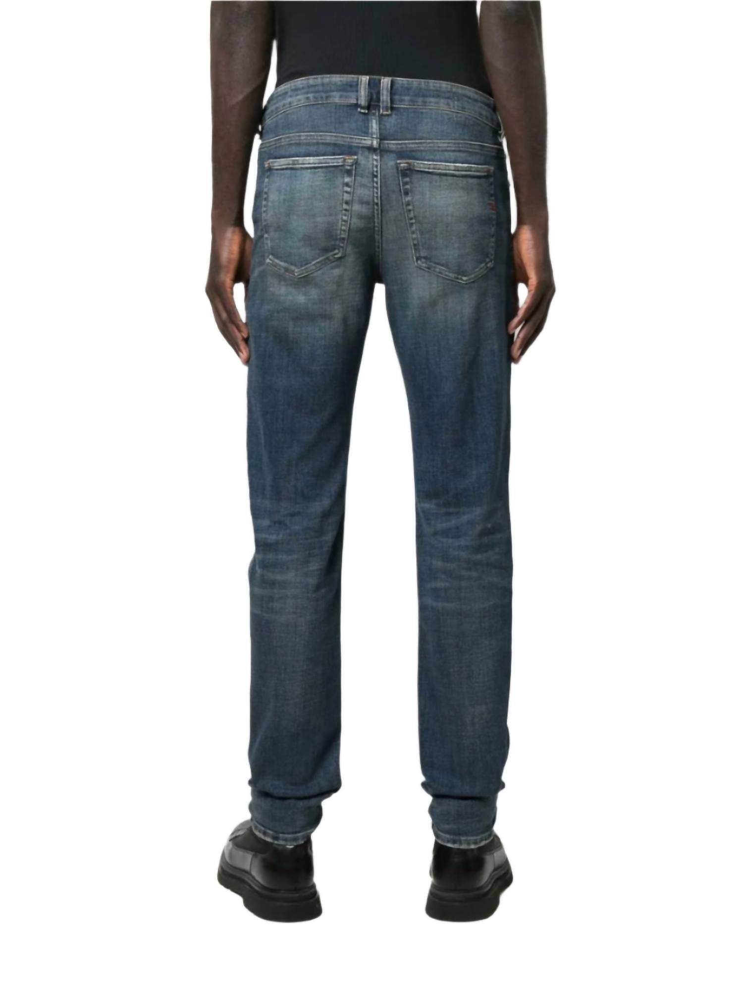 Discover the DIESEL Men's Sleenker Skinny Fit Denim Jeans, designed with a low-rise, skinny cut for modern style. These jeans are crafted from durable stretch-cotton in a medium blue wash that includes classic five-pocket styling and an embroidered logo on the rear tag. Closure: Concealed button fly. Care: Machine wash. Perfect for concert nights or New Year's Eve celebrations, these jeans embody the Y2K trend with subtle whiskering at the thighs and solid coloring, aligning with the brand’s commitment to sustainable cotton farming through the Better Cotton Initiative.