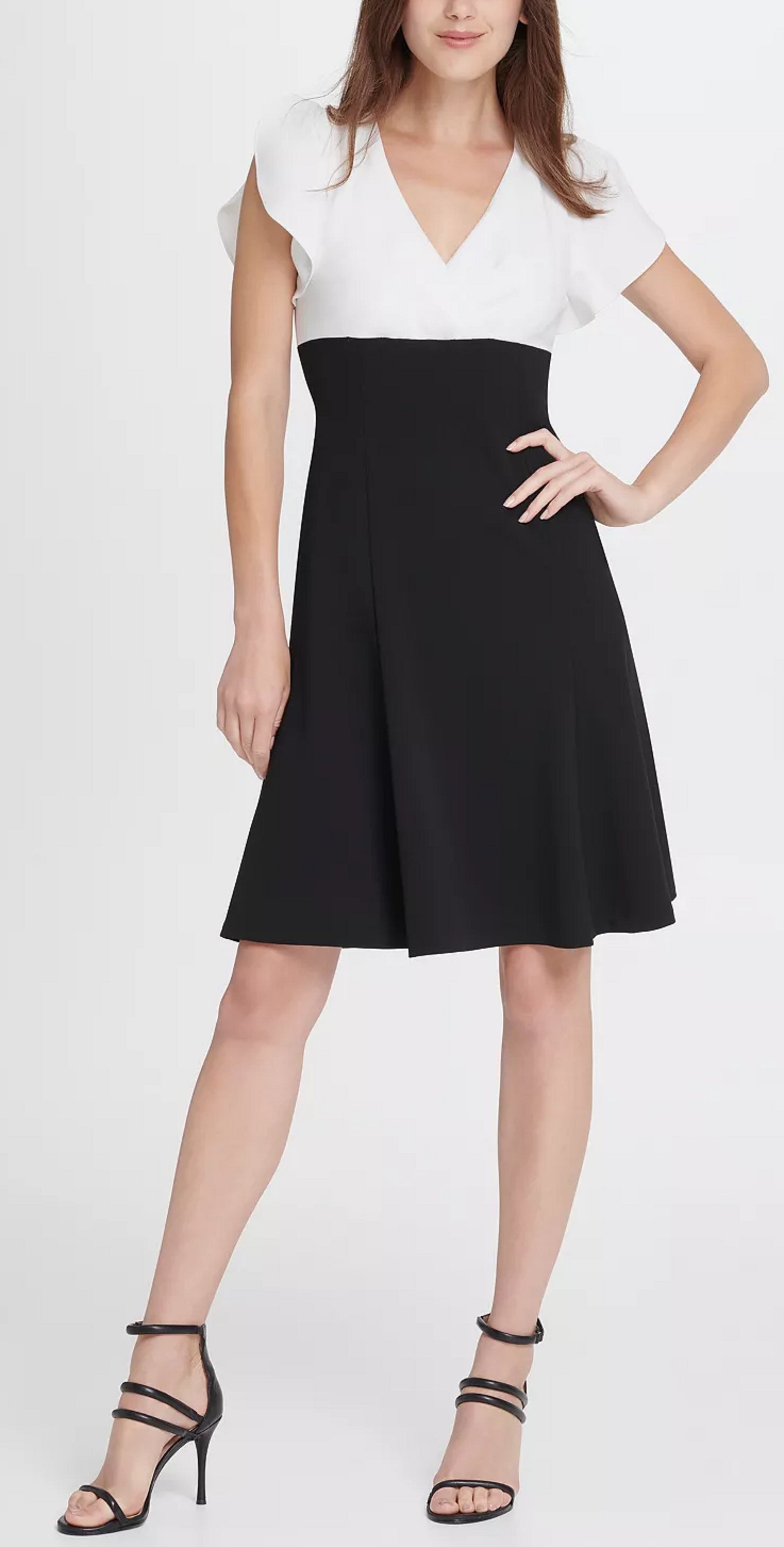 DKNY Women's Colorblock Tulip Sleeve Fit Flare Dress Black/White Size 12