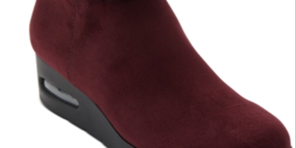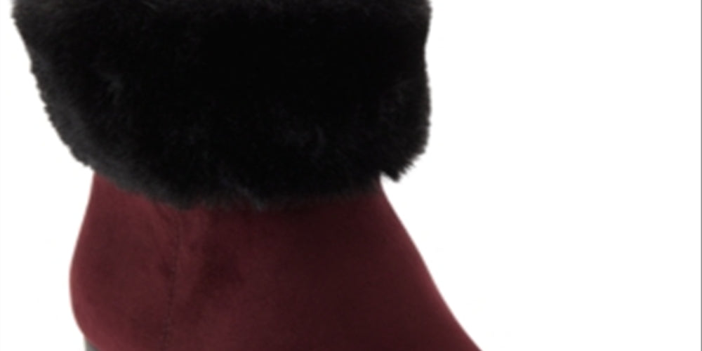DKNY Women's Faux Fur Cuff Embellished Round Toe Wedge Zip up Booties Red Size 7.5