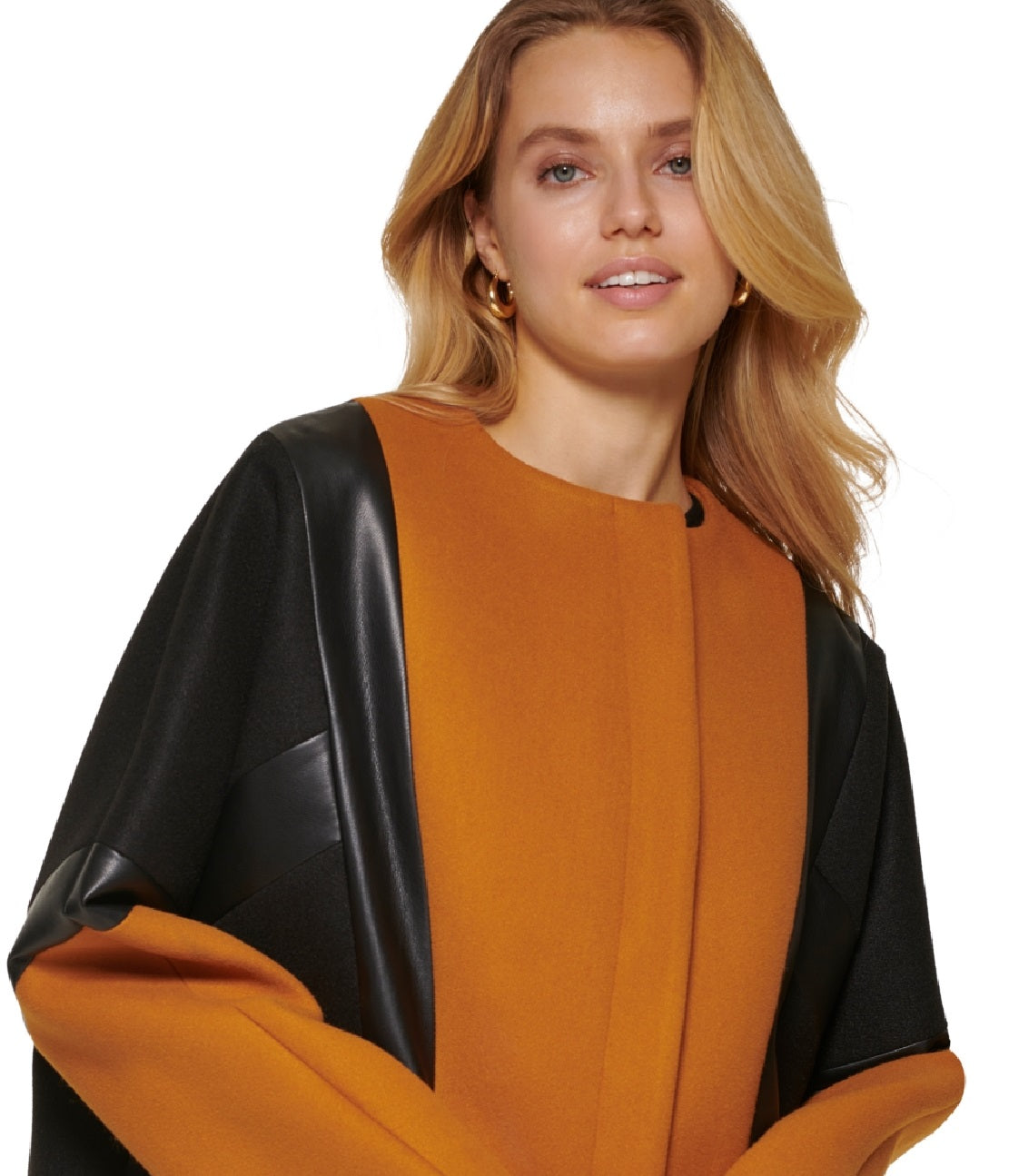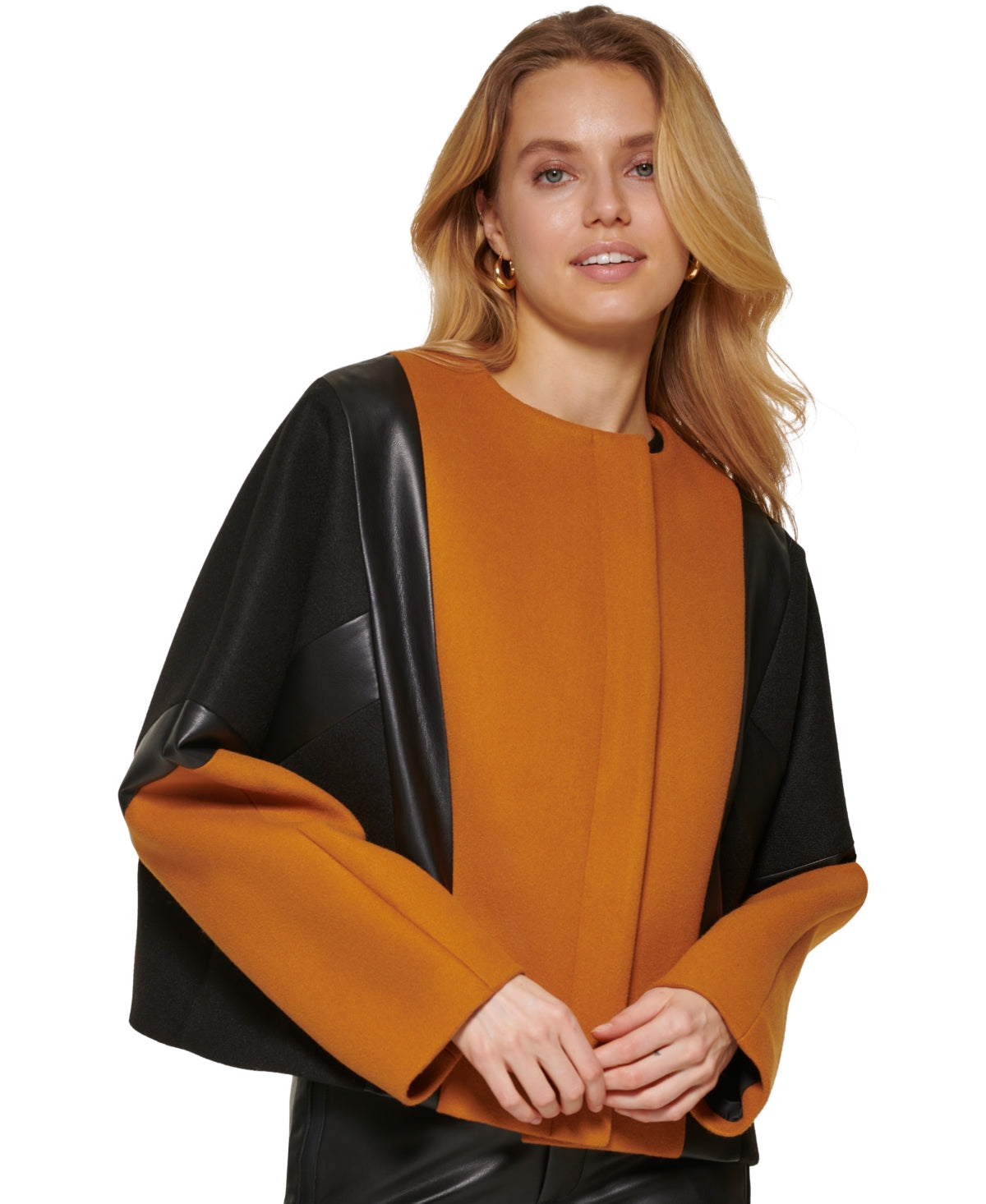 DKNY Women's Mixed Media Jacket Brown Size Large