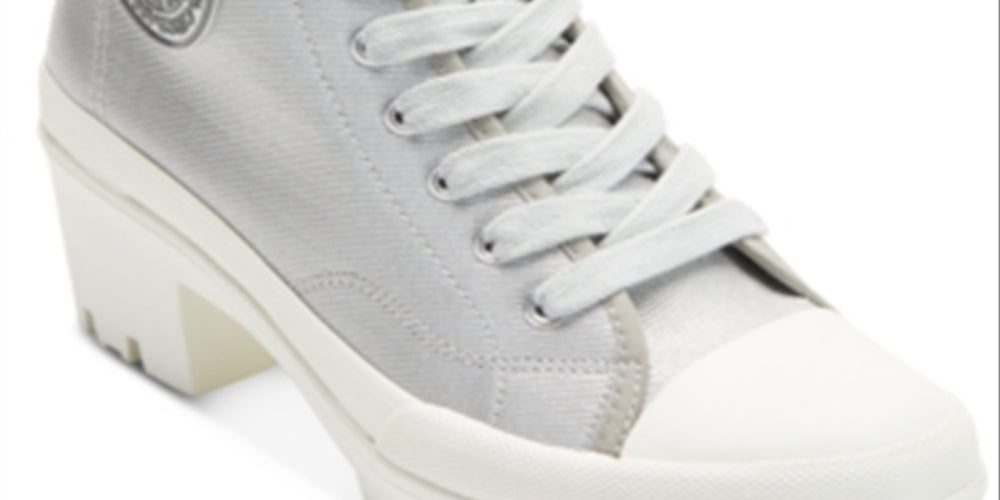 Dkny's Pandie booties boast a rugged street-chic profile topping off a white lug platform heel with a laced high-top silhouette