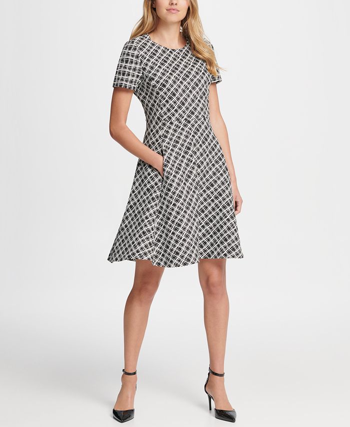 DKNY Women's Printed Fit& Flare Mini Dress Black Size 8