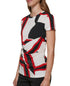 DKNY Women's Printed Side Knot Short Sleeve Knit Top Red Size Petite Small