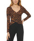 DKNY Women's Printed V Neck Faux Wrap Long Sleeve Top Brown Size Medium
