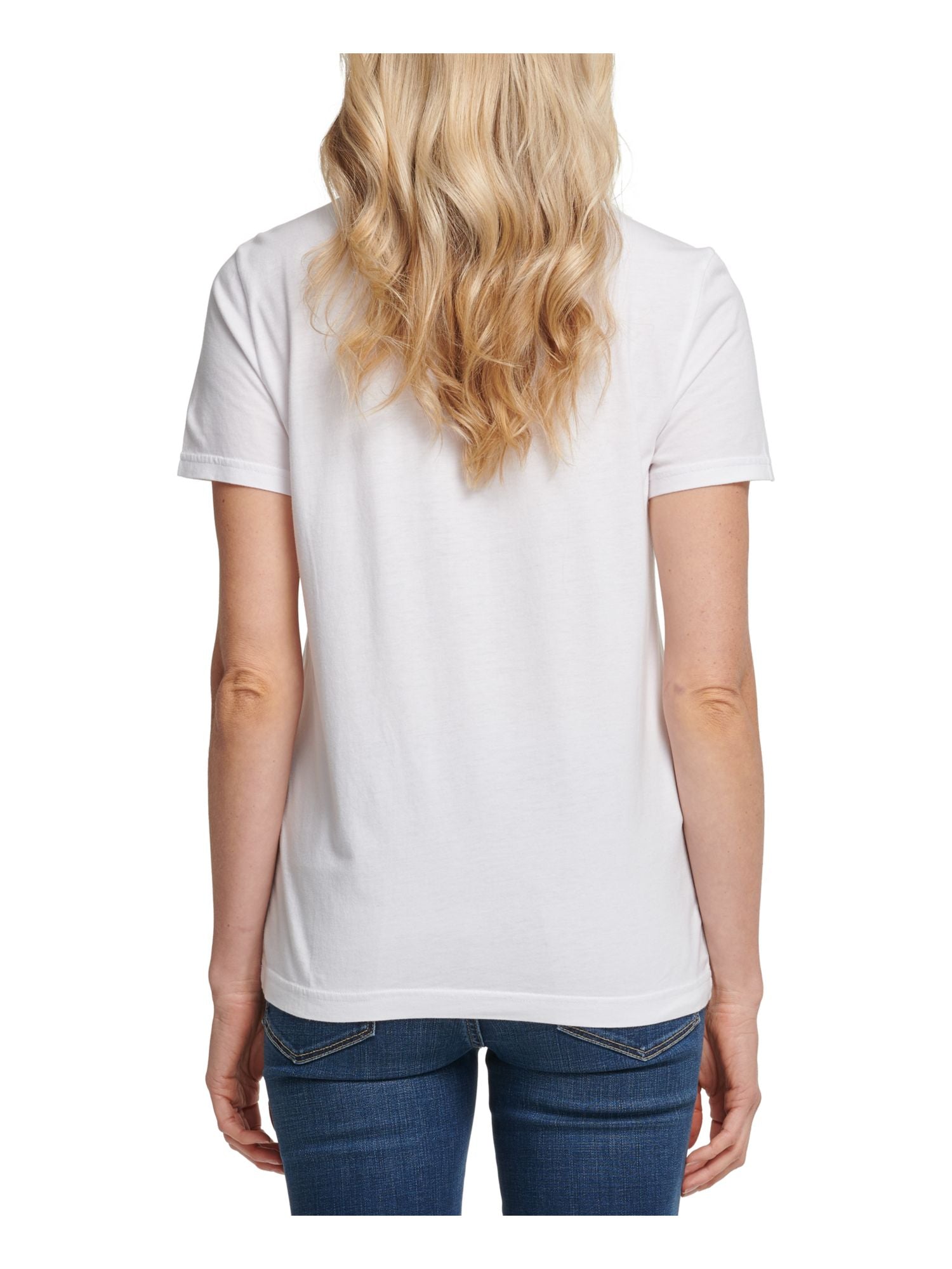 DKNY Women's Sequined Short Sleeve Crew Neck T-Shirt Top White Size Large