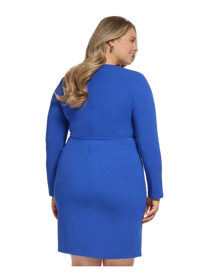 DKNY Women's V Neck Twist Front Long Sleeve Dress Blue Size 18W