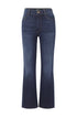 Fit to perfection, we love these high-waist jeans and you will too.High-rise, cropped boot cut fit. Thunderbird is a clean, dark indigo wash with subtle fading and whiskering. It features brushed gold hardware, khaki stitching, raw hem and a brown back patch. Fabric Detail: 92% Cotton, 6.5% Elasterell-p, 2% Lycra. Rise: 10”. Inseam: 27”. Leg Opening: 17.25”