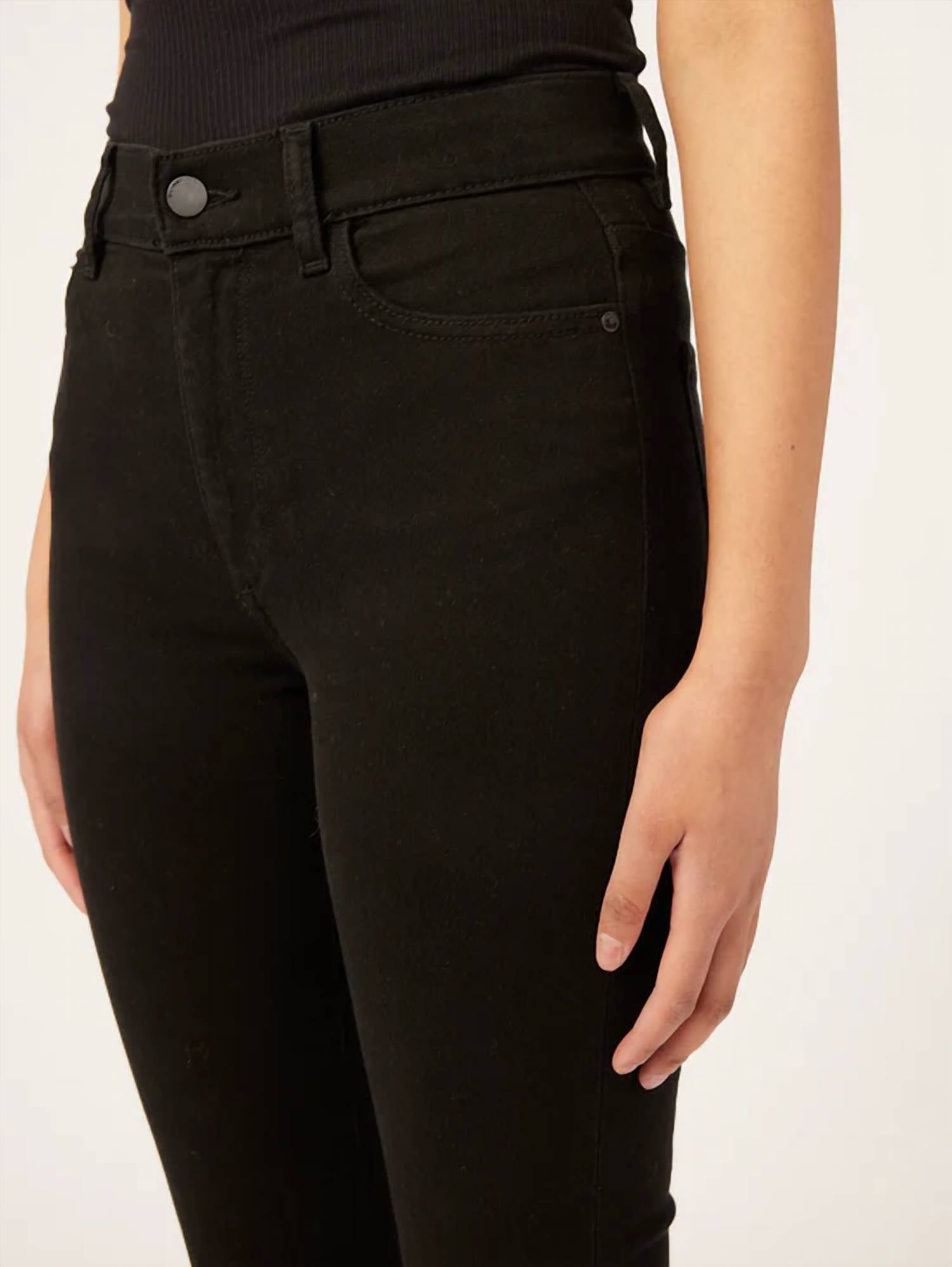 Just add boots! Bridget is a high-rise, cropped boot cut fit that utilizes our Instasculpt technology to smooth, sculpt, and conform to your body for the perfect fit. Henderson is a no-fade black wash with a raw hem.